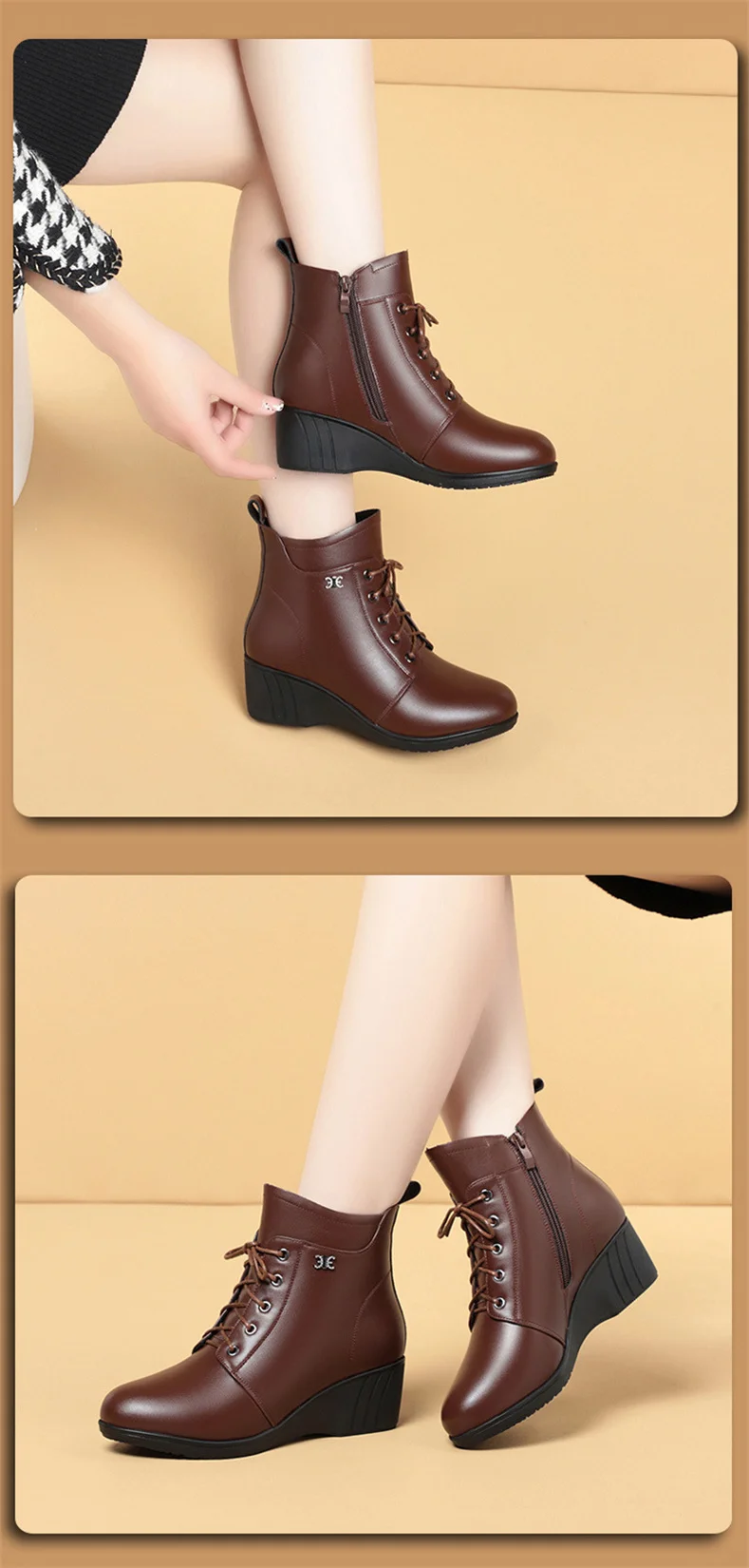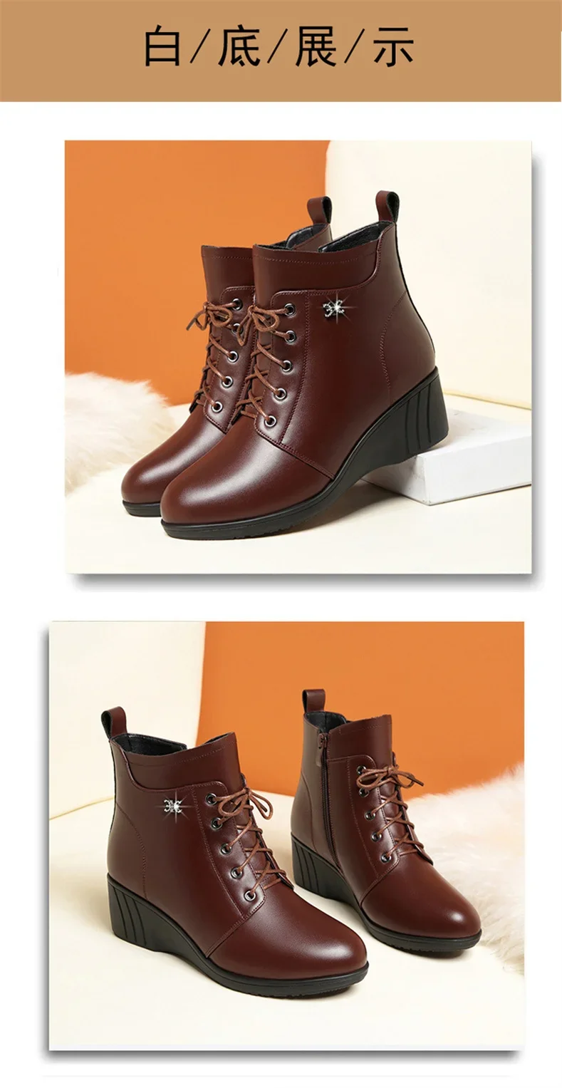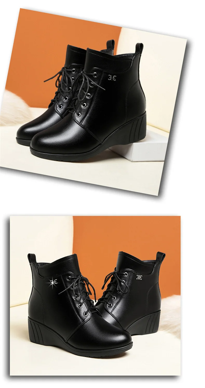 Otoño Invierno, zapatos gruesos de algodón y piel cálida, tacones altos para mujer, cuñas de cuero, botines de fondo plano de fondo suave
