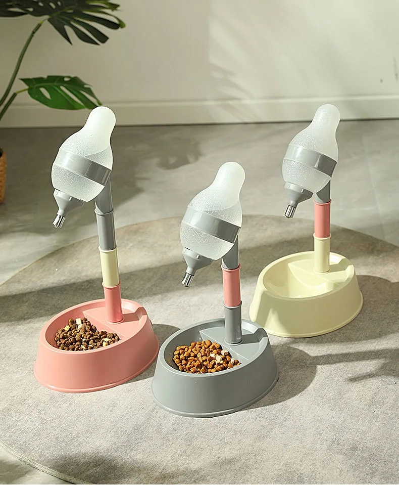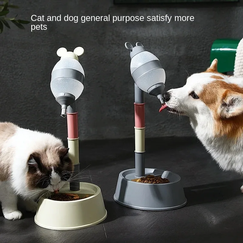 OUZEY-dispensador de agua para mascotas, fuente de agua colgante para gatos de altura ajustable, cuenco de agua de cerámica de doble capa para perros y gatos, bebedero para mascotas