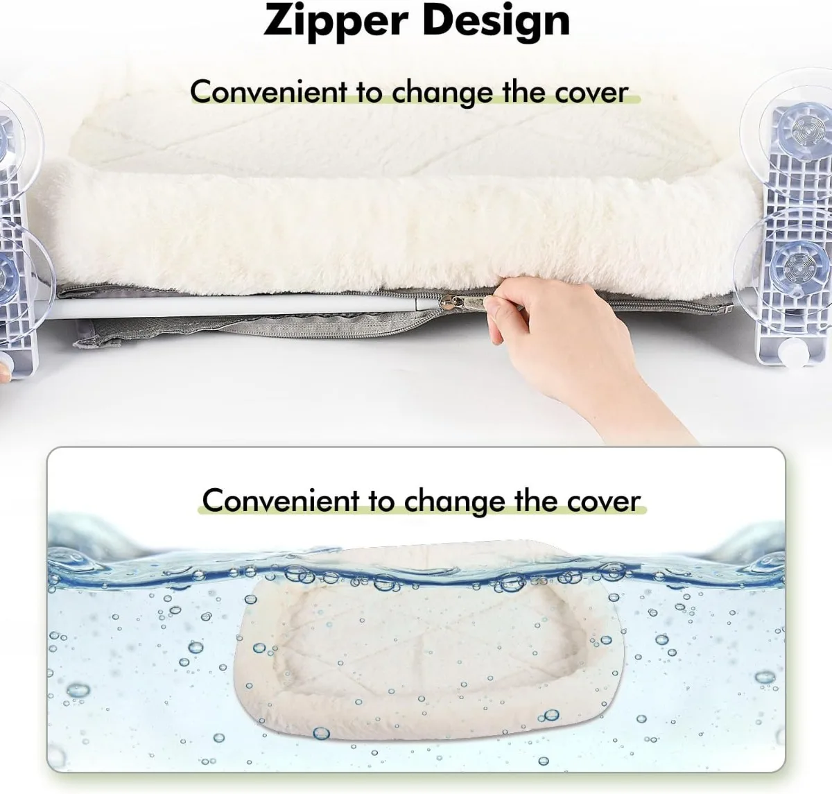 Se parece a las fotos. Fácil instalación. Los vaqueros son un poco ajustados, pero espero que esté bien. Por ahora, la hamaca está en la cama porque el gato está durmiendo conmigo y se está acostumbrando. Yo recomiendo.