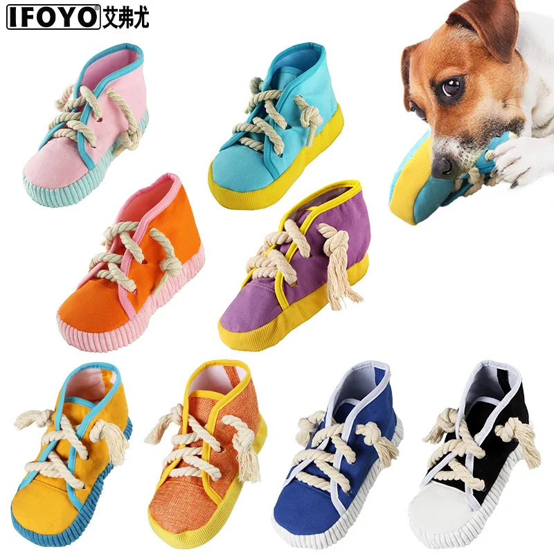 OUZEY, juguetes resistentes a mordeduras para perros, zapatos de lona con forma de juguetes para la dentición para perros pequeños y grandes, juguetes interactivos de entrenamiento para perros