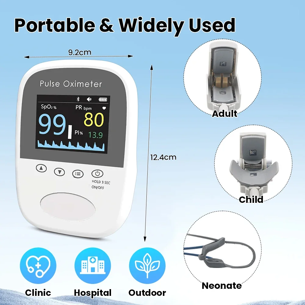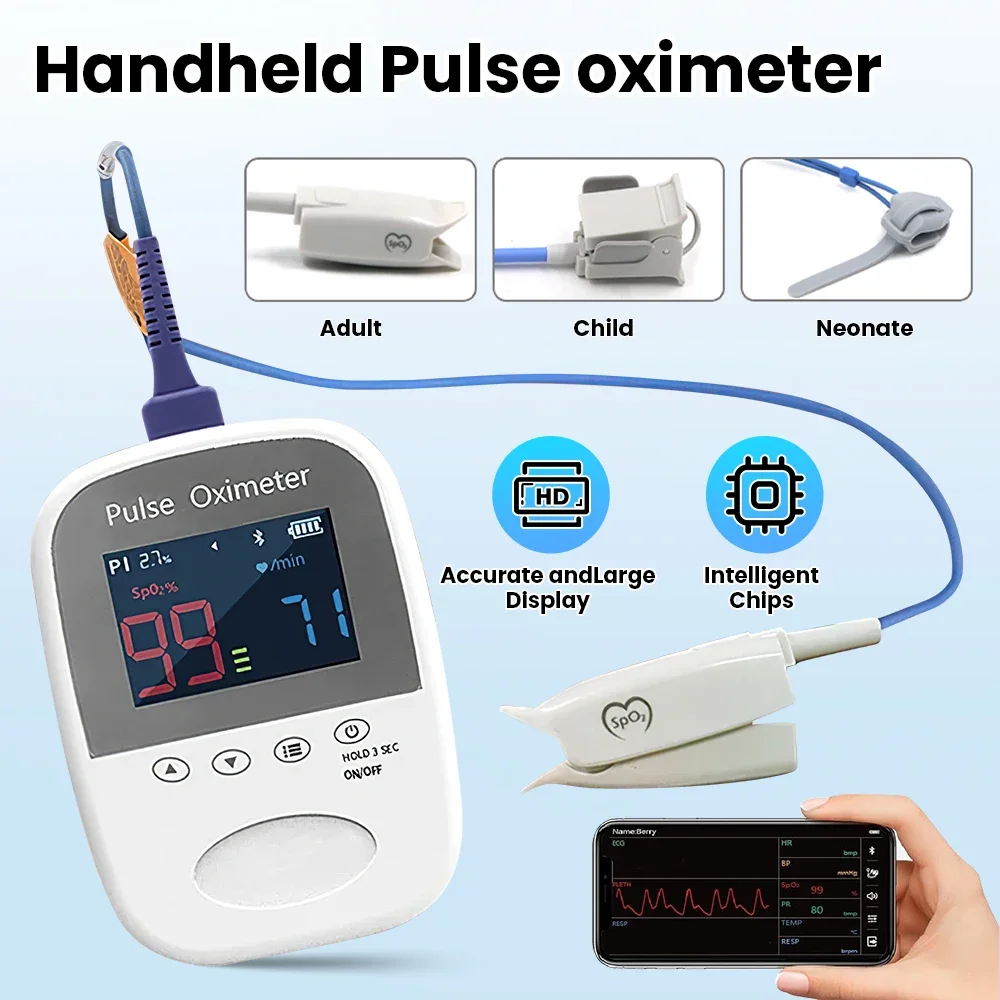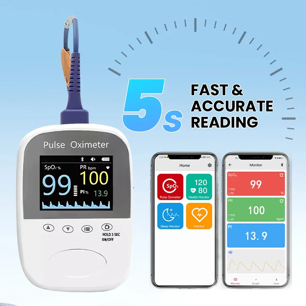 El oxímetro de pulso BM1000A adopta la tecnología fotoeléctrica de inspección de oxihemoglobina integrada con tecnología de escaneo y grabación de pulso de capacidad, que se puede utilizar para medir la saturación de oxígeno humano y la frecuencia del pulso a través del dedo.Neonato niños adultos con oxímetro de pulso portátil Preemie del bebé SPO2 Frecuencia de pulso PI Bluetooth APP Saturación de oxígeno.