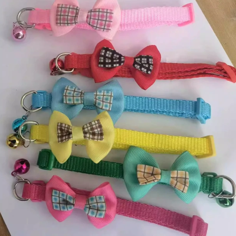 Collar de gato con pajarita a cuadros de 1,0 cm, collar de seguridad extraíble ajustable con campana para gatos y perros pequeños