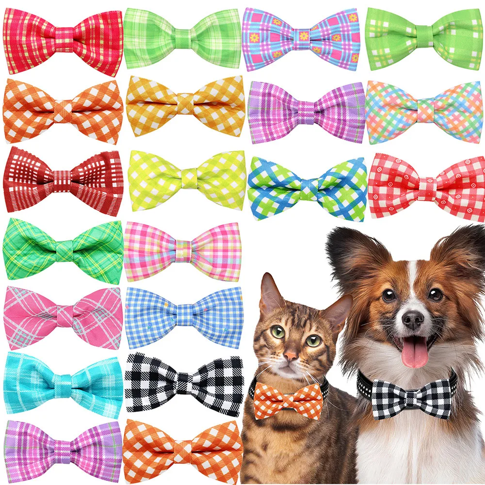 Pajarita deslizable para perros de 50 piezas, Collar de verano para perros y gatos, accesorios para perros pequeños, estilo a cuadros, suministros para el cuidado de perros y Mascotas
