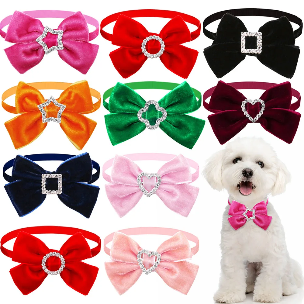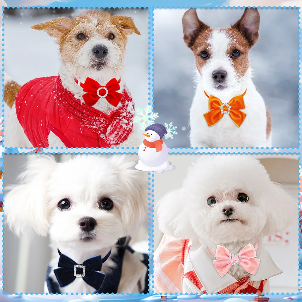 Pajarita de diamante para perros pequeños, Collar de invierno para mascotas, accesorios de aseo para mascotas, 50 piezas