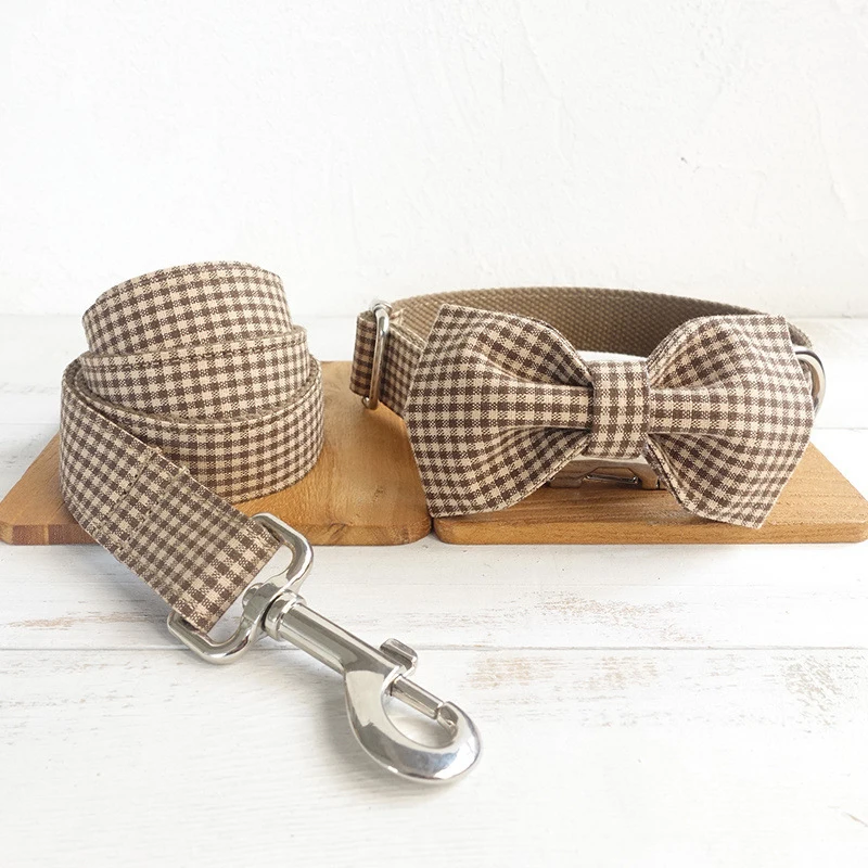 Nombre del producto: Pajarita para perro de dibujos animados a cuadros de café, accesorio para Collar para mascota, suministros para cachorros y gatos, herramientas de aseo, pajarita ornamental desmontable para perros