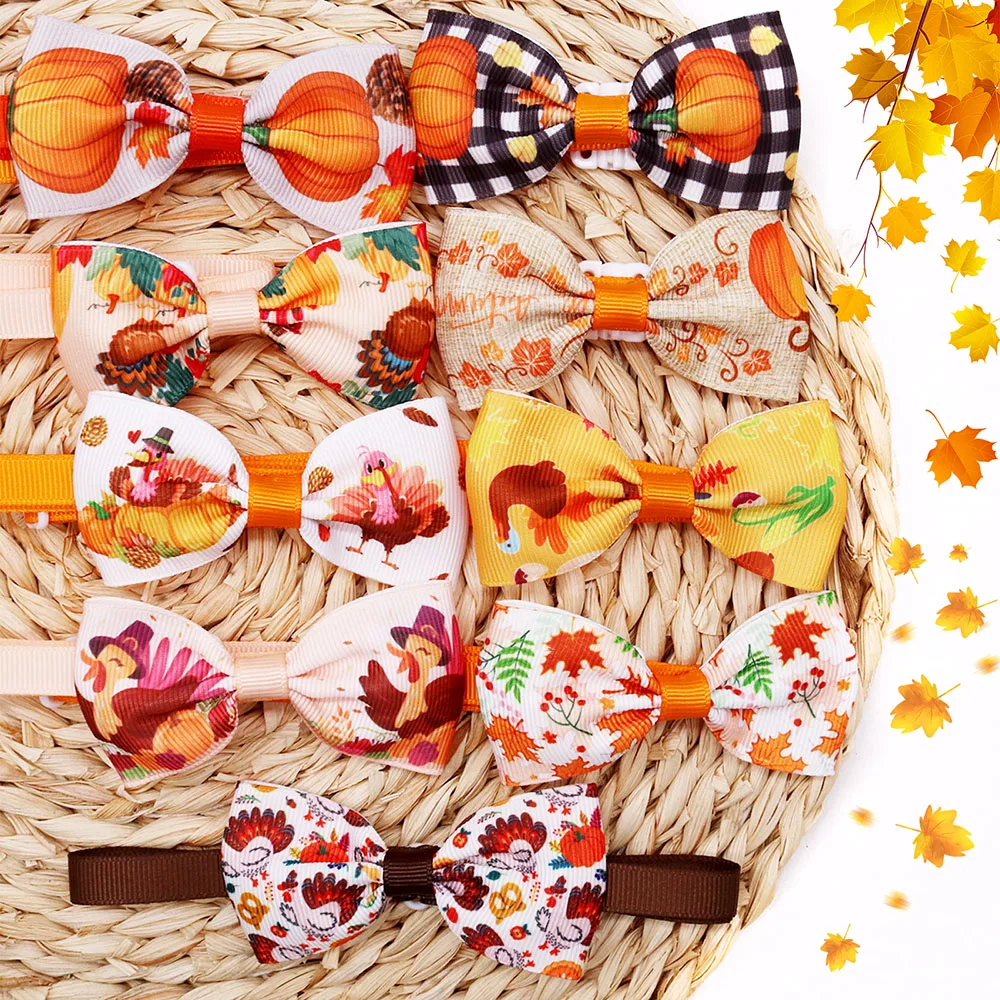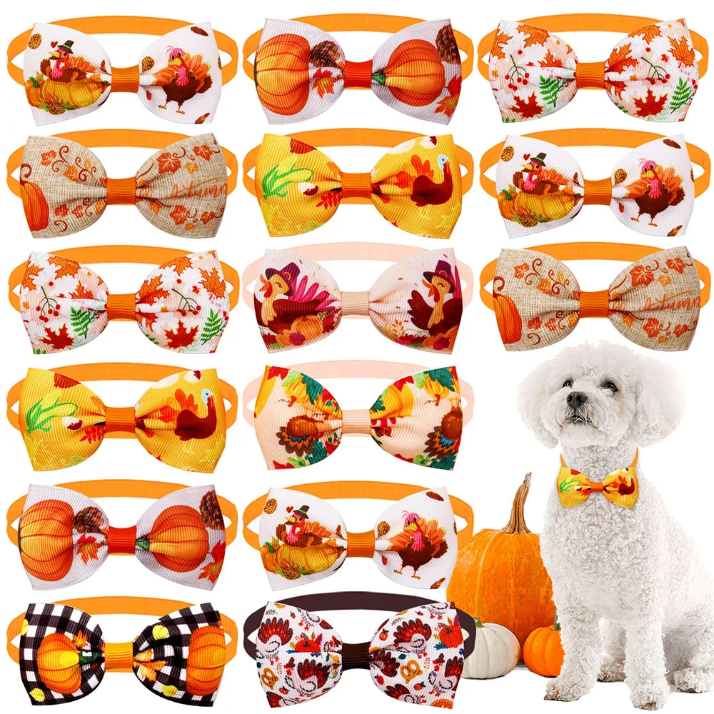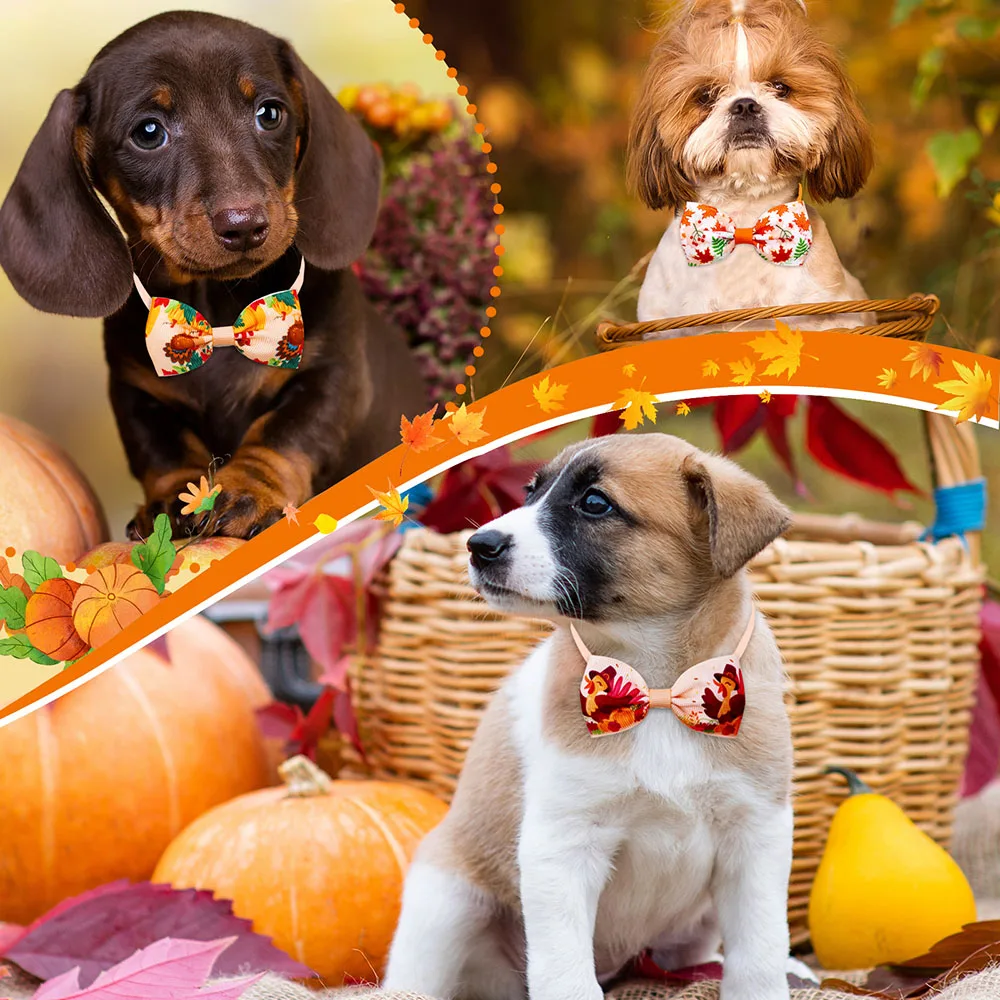 Pajarita para mascotas, lazo naranja con diseño de hoja de arce, para Otoño y acción de gracias, 50 piezas