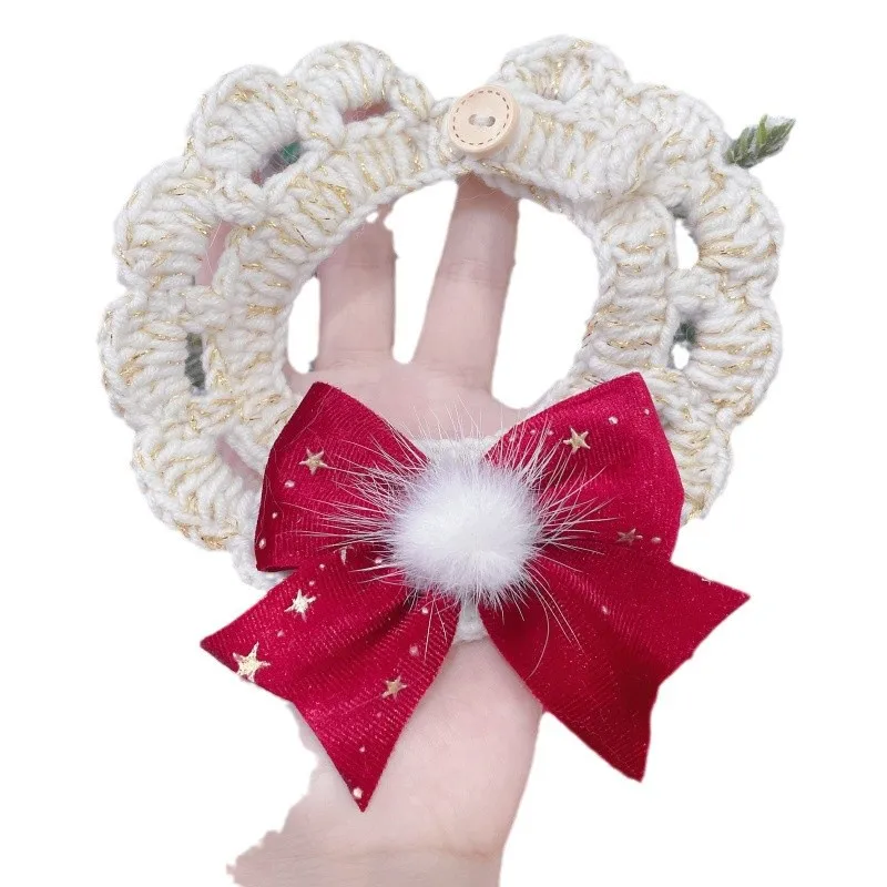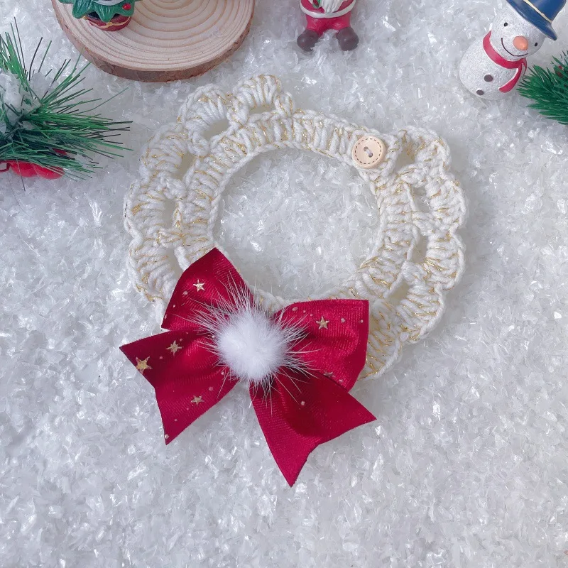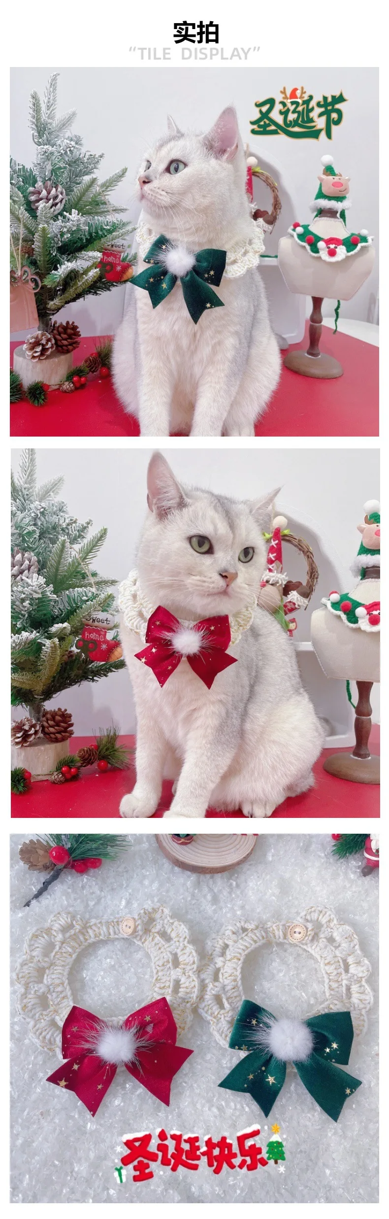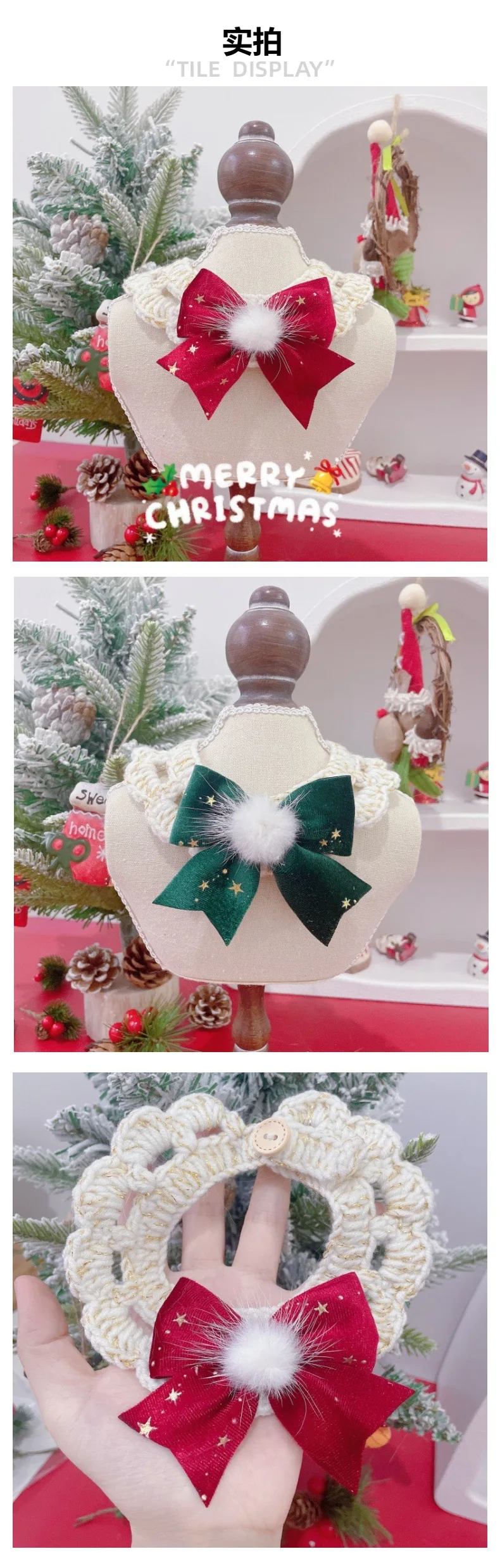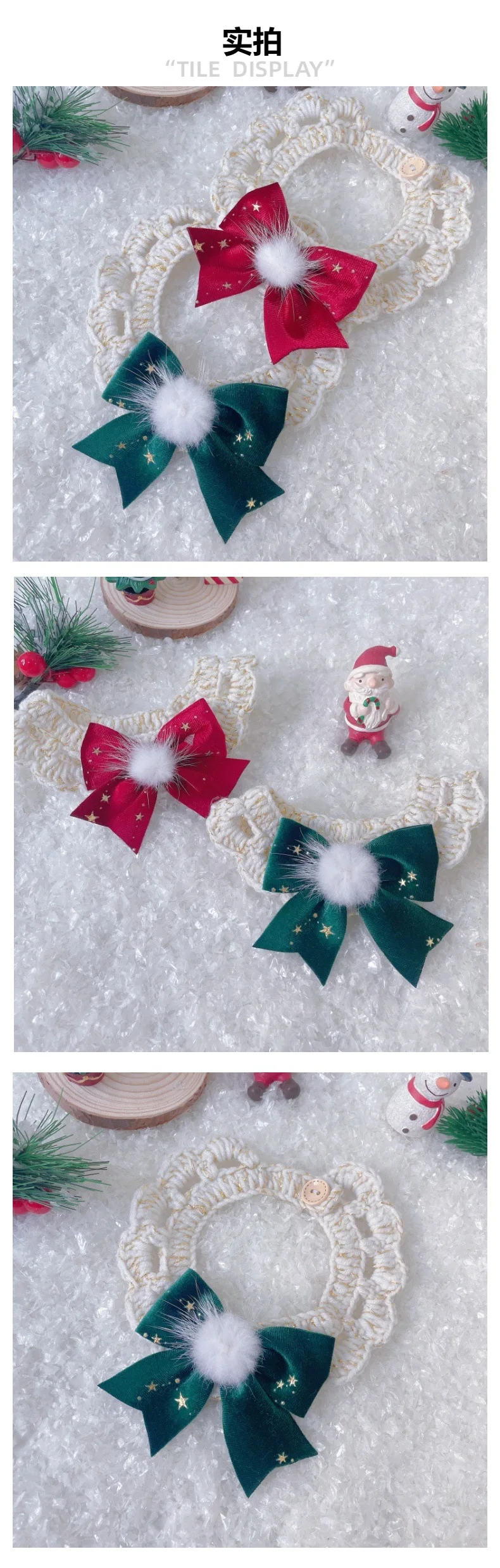 Pajarita navideña para mascotas, bufanda con bola de piel, Collar de corbata de Año Nuevo para perros y gatos, accesorio de toalla para babas para mascotas, accesorios para perros pequeños