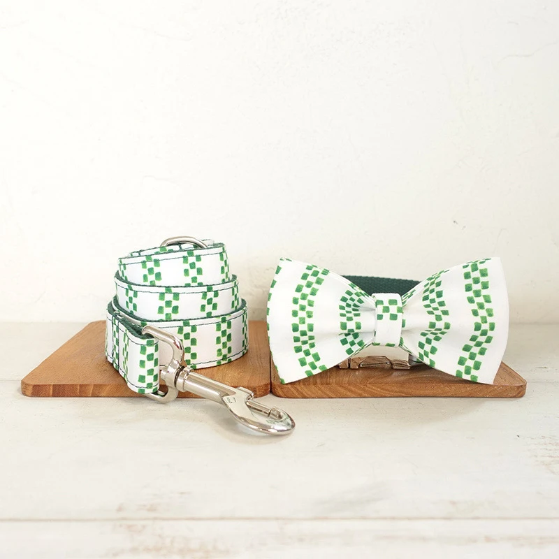 Pajarita para perro con forma de cubo de bambú verde, accesorio para Collar, suministros para cachorros y gatos, herramientas de aseo, pajarita Ornamental desmontable para perros