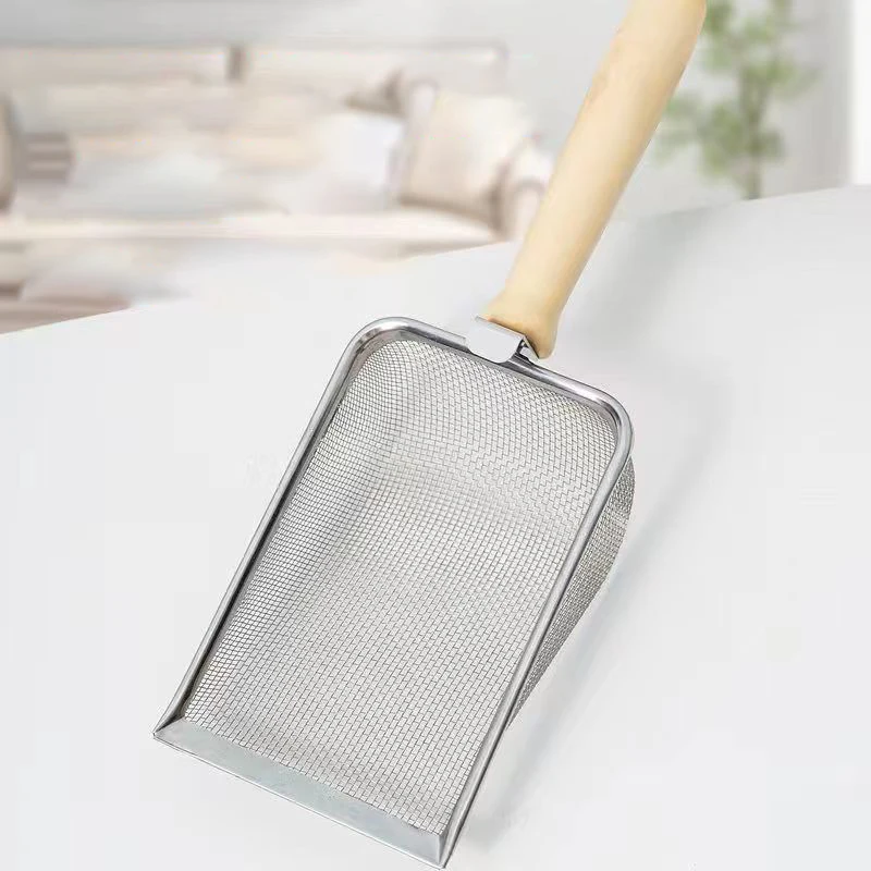Pala de arena para gatos de acero inoxidable, pala de sustrato de arena para reptiles, limpia heces, tamiz de malla fina para ropa de cama