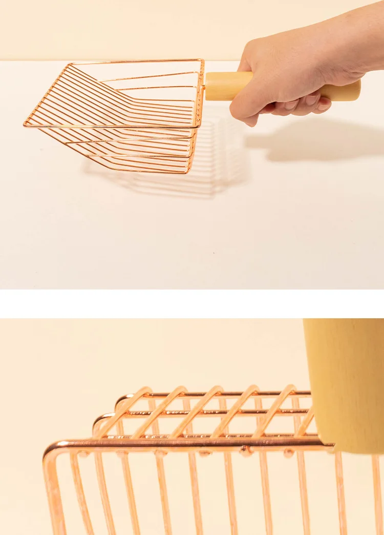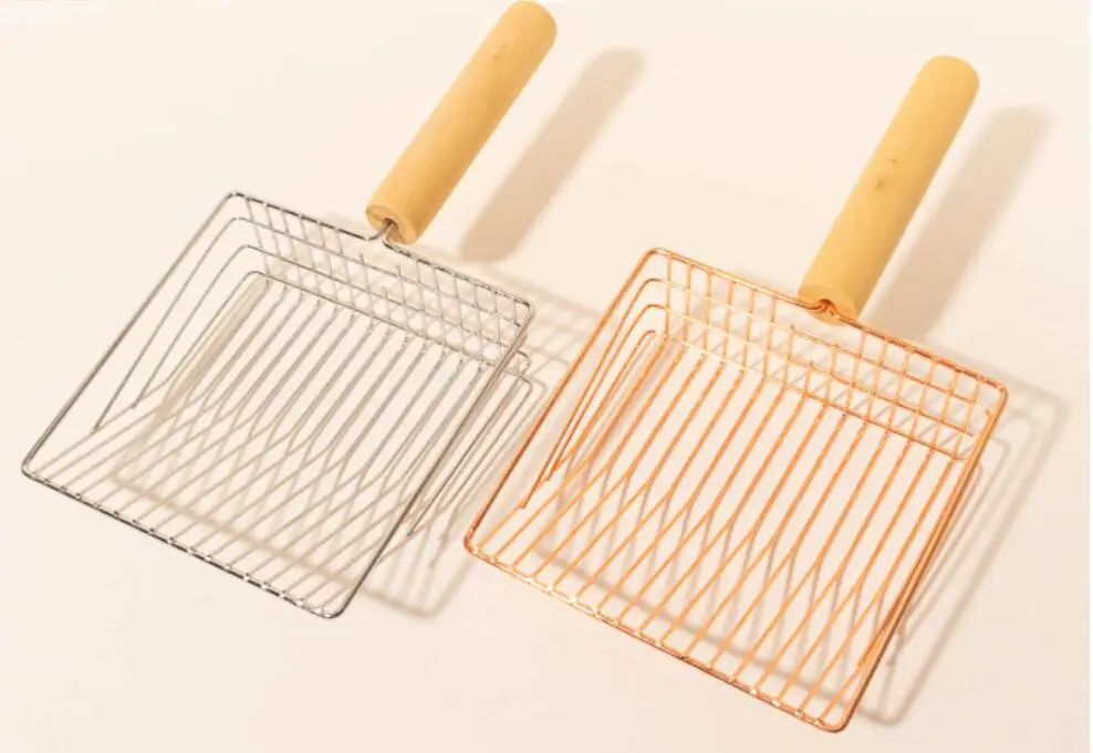 Pala de arena para gatos, pala de arena de Metal para limpieza de inodoro de gatos, palas de arena con mango de madera para gatos, palas de arena para gatos de acero inoxidable