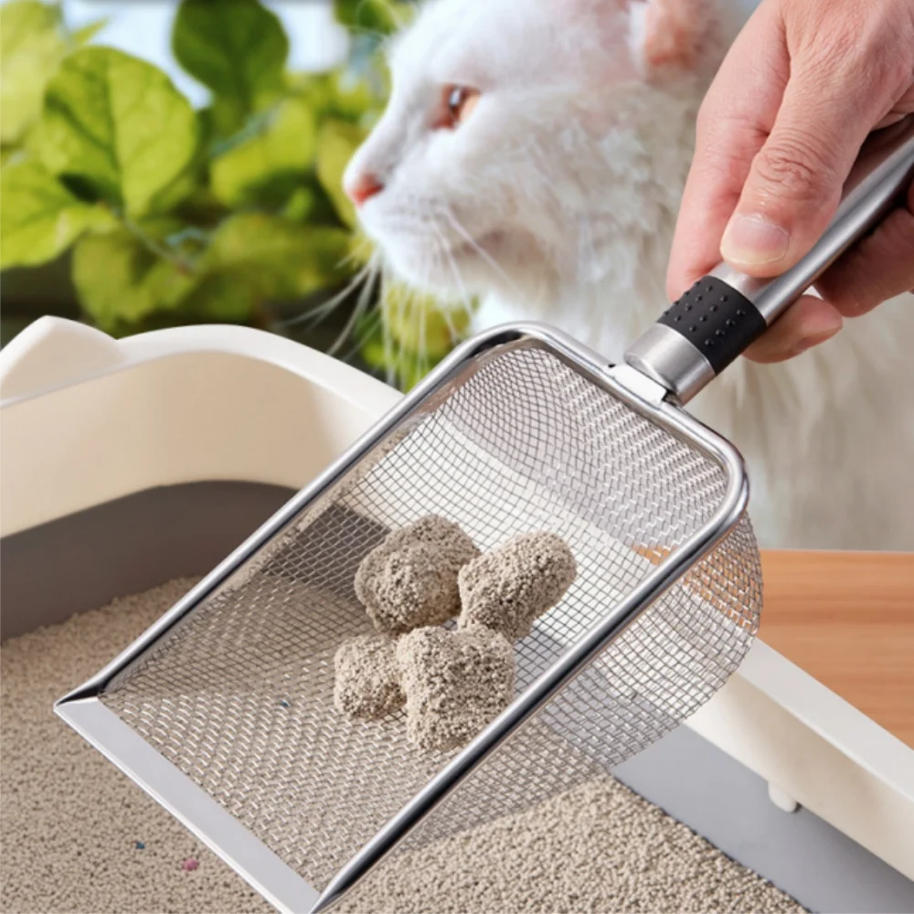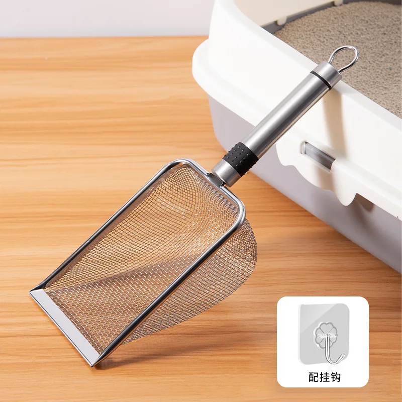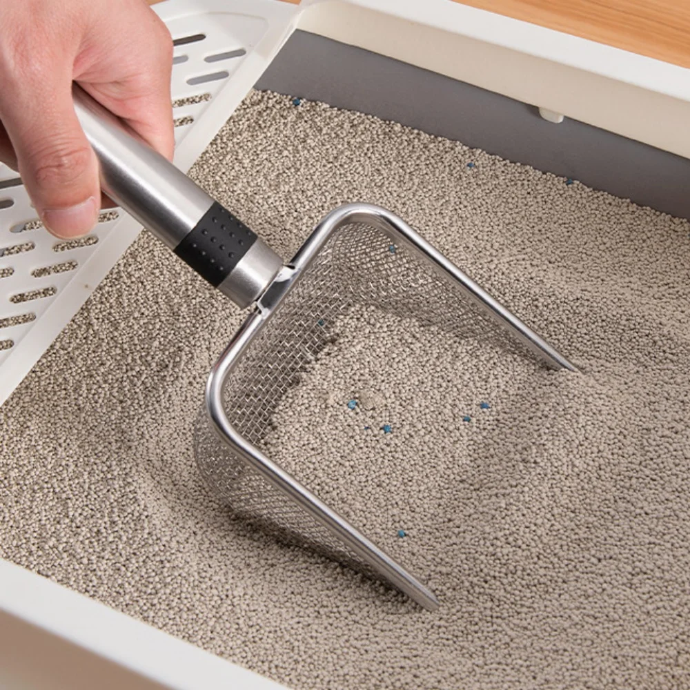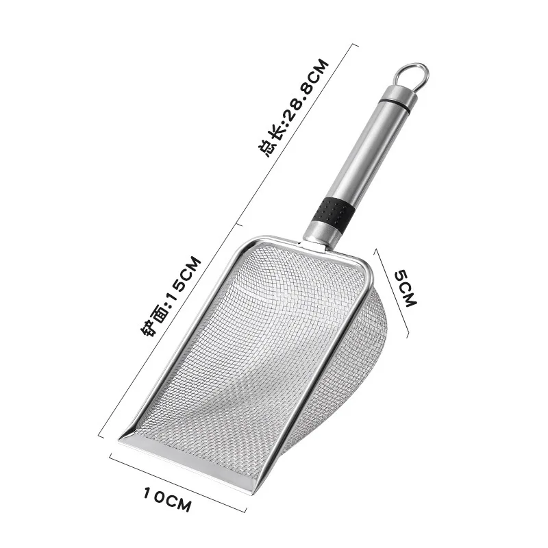 Pala de arena para gatos, pala de sustrato de arena para reptiles de acero inoxidable, limpieza de patatas fritas, tamiz de malla fina para ropa de cama, cuchara de arena para gatos