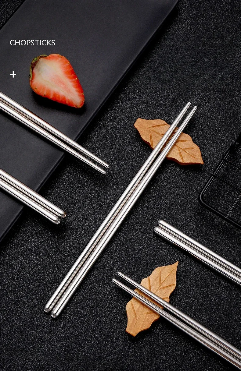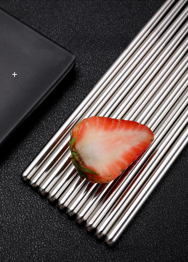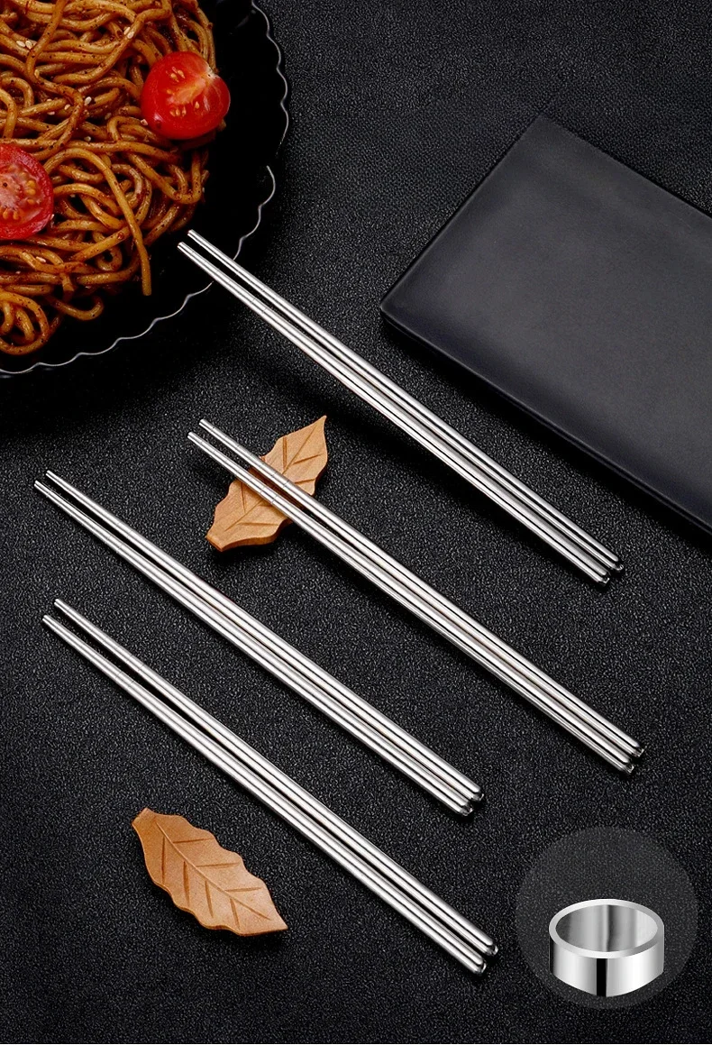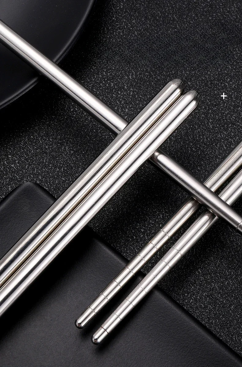 Palillos de acero inoxidable antideslizantes para Sushi, palillos metálicos coreanos y japoneses, cubiertos de cocina, vajilla, 5 pares