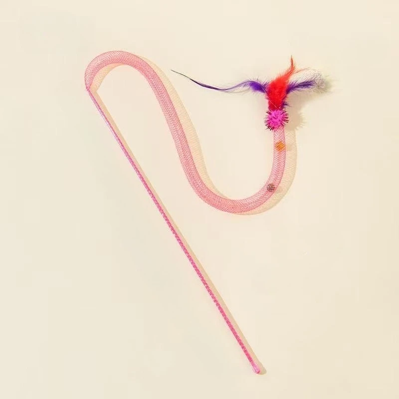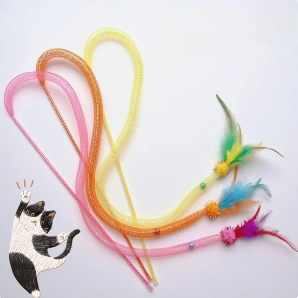 Palo de gato con plumas, tubo de malla elástica, varilla de juguete para gatos, juguetes interactivos para gatitos, varita para mascotas, 2 uds./3 uds.