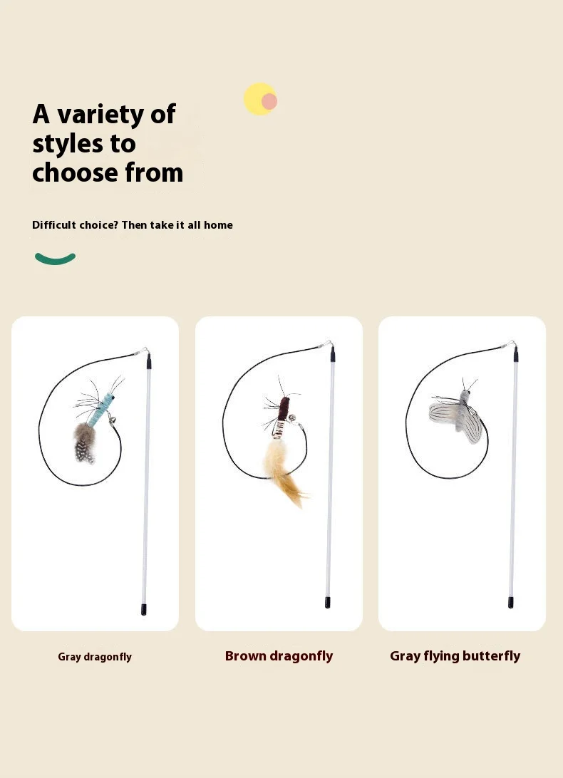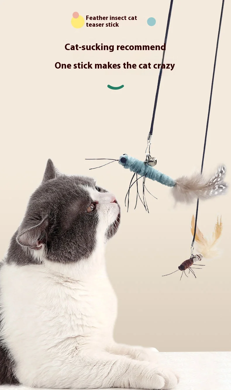Palo de gato provocador, insecto, libélula, pluma, suministros para gatos, mascota, polilla, juguete interactivo divertido para mascotas, poste de juguete para gatos