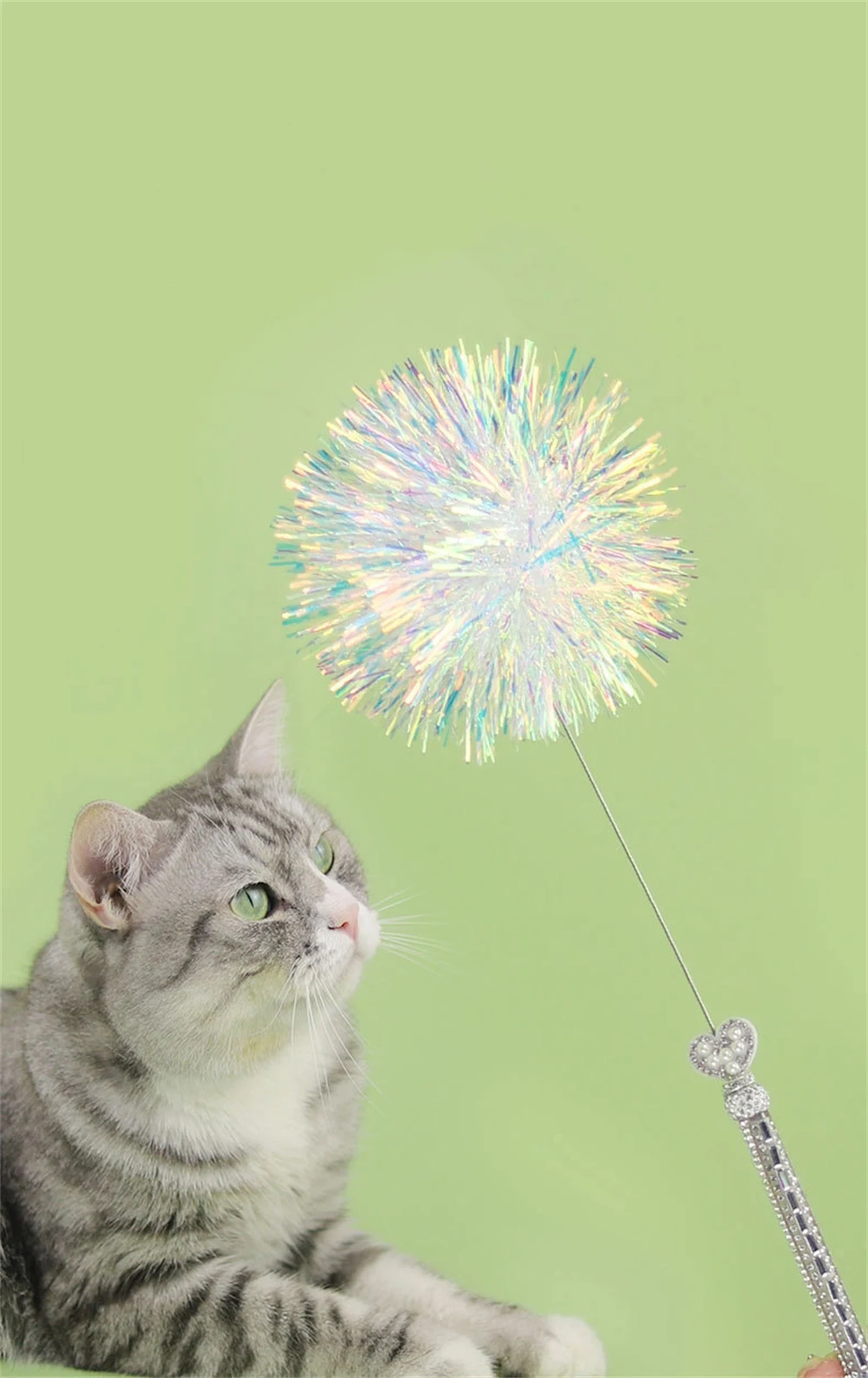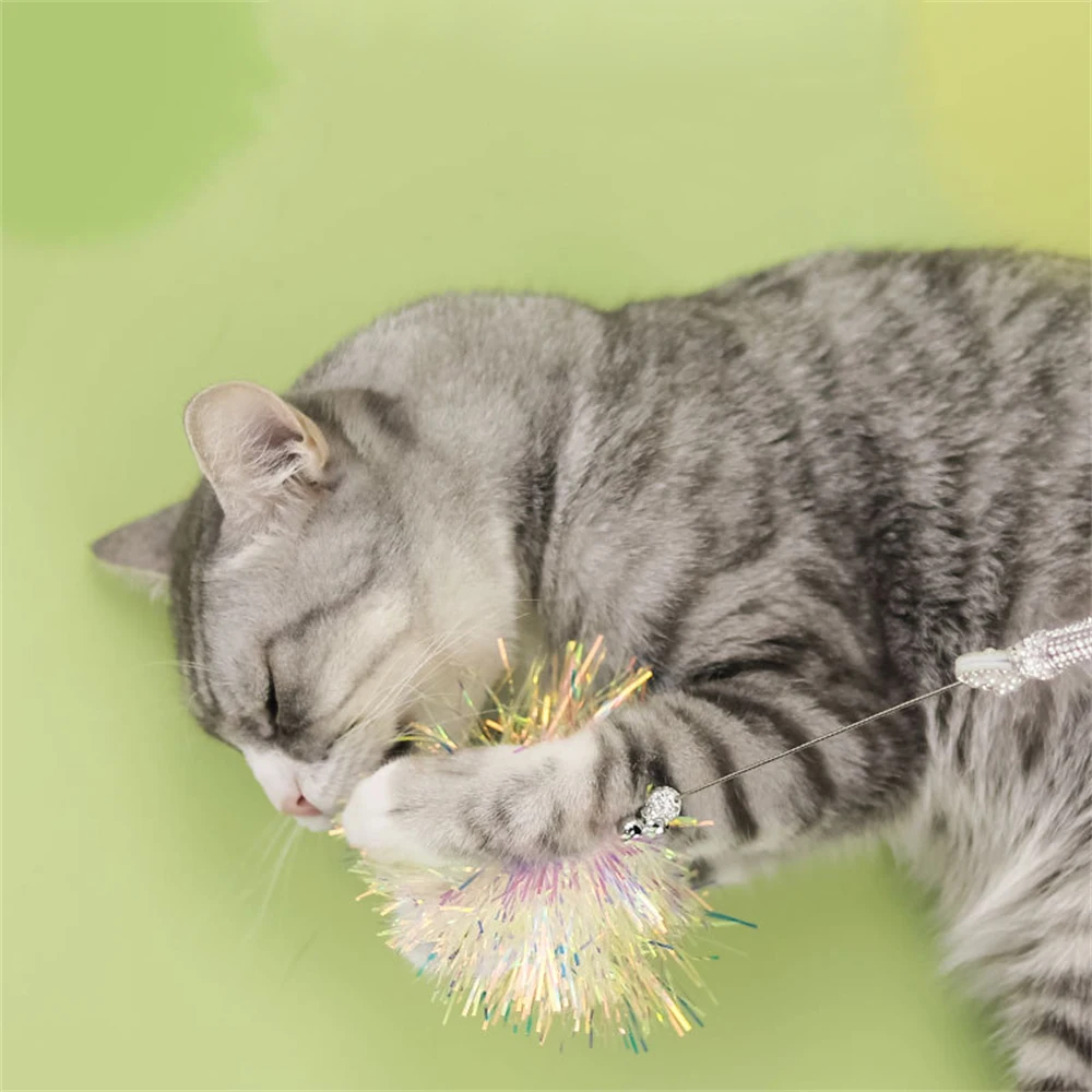 Palo interactivo con sonido colorido para gatos, juguete de entrenamiento con Pompón, con campanas, para interiores