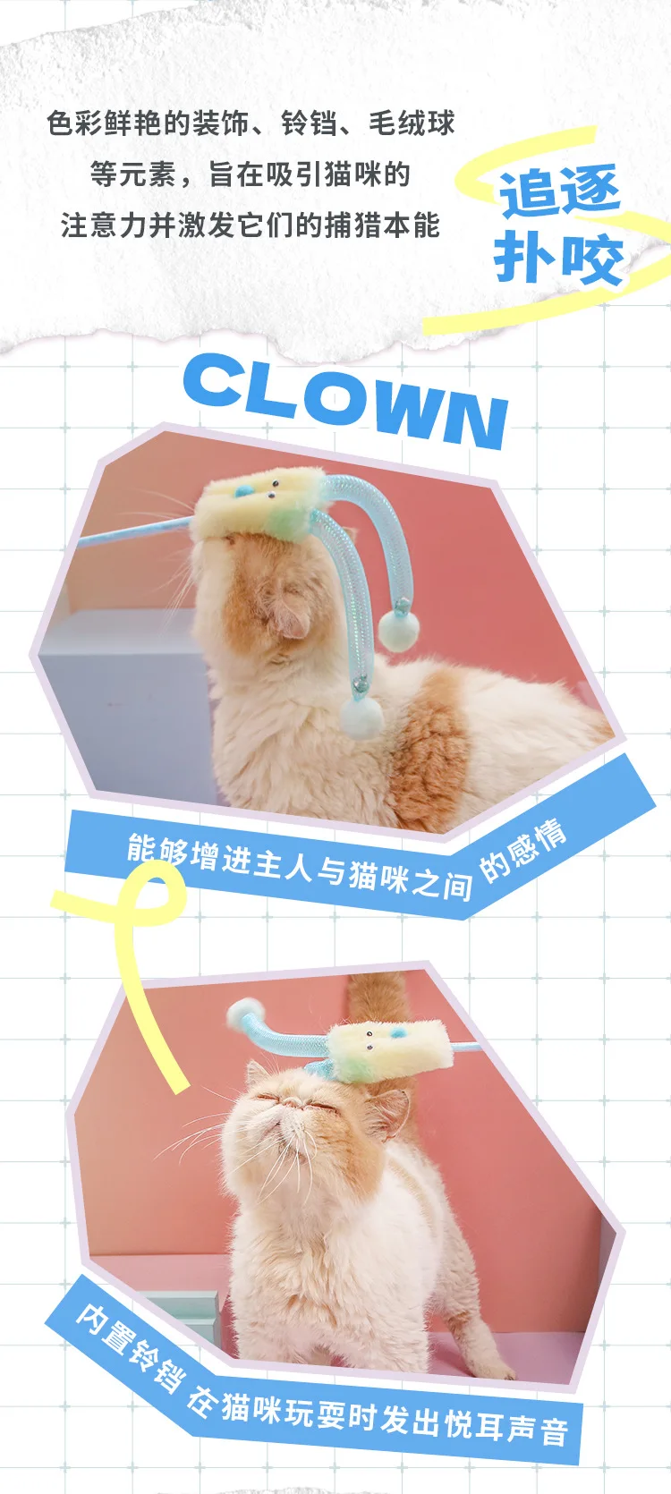 Palo de payaso bonito para mascotas, campana, juguete interactivo para gatos, suministros para mascotas, juguetes interactivos para gatos, productos accesorios interactivos para mascotas