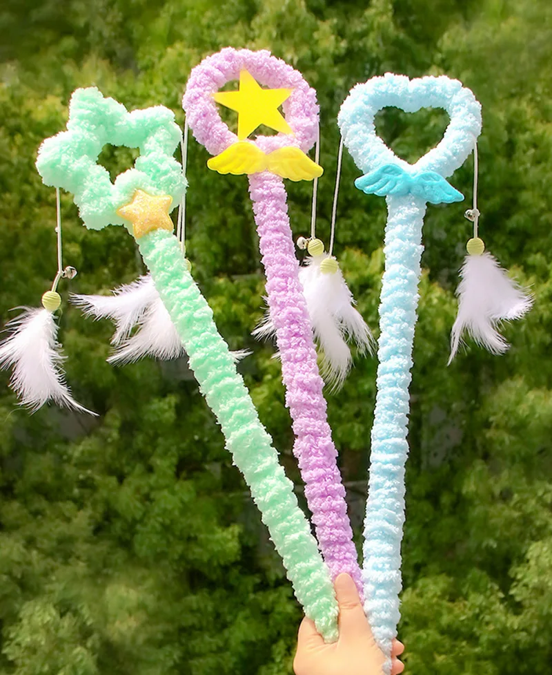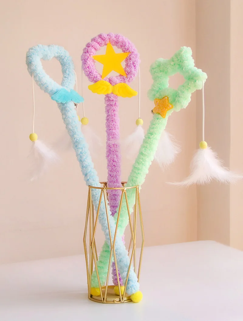 llego rapido y en buen estado. es muy suave al tacto. a mi gato le encanto. a mi tambien me gusto, se parece al cetro de sakura card captor, asi que tambien es entretenido para mi xd