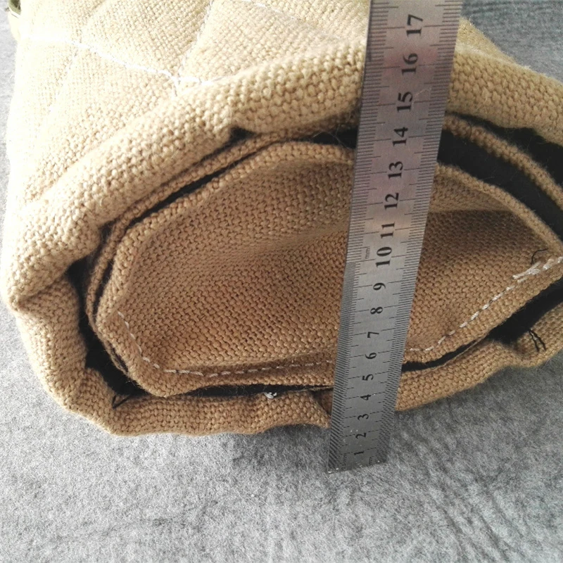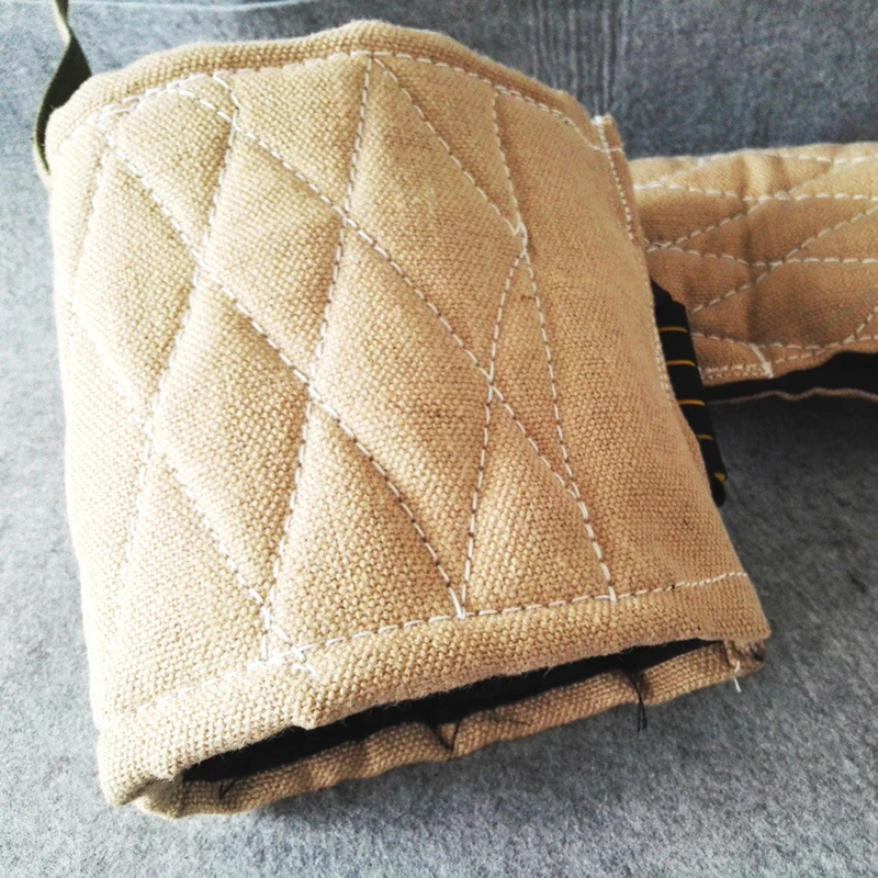 4 layers thickened, inner cotton felt, outer burlap, bold stitching. There is no pressure to train Demu and the horse. Hold the inner handle with the handle dog inside, and fix the inner liner of the outer sleeve. There is a hook-and-loop connection on the front of the jacket, two ropes on the back for the inner liner, and two perforations on the back of the liner for the rope. The jacket is also designed with a handle. When the dog is trained, the internal handle is held by the left hand.