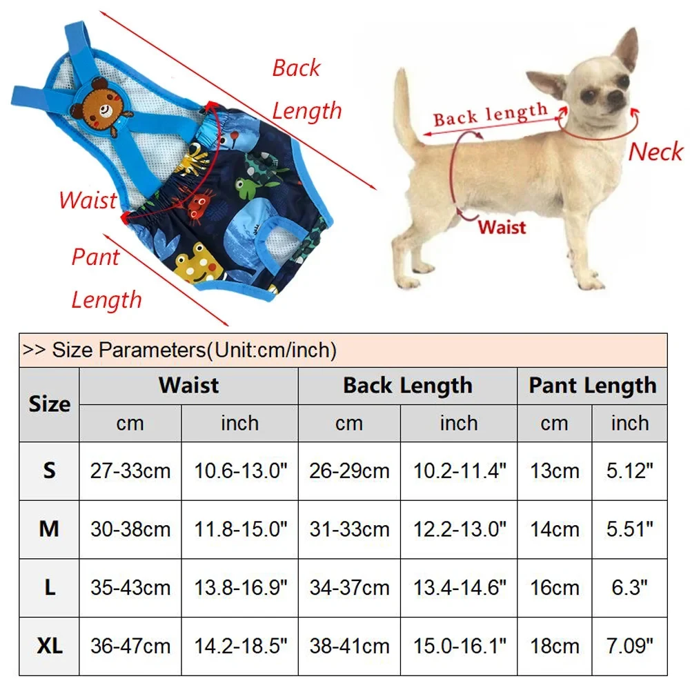 Pañales reutilizables para perros, ropa interior femenina, calzoncillos con tirantes ajustables, pantalones fisiológicos con estampado de dibujos animados para cachorros y niñas
