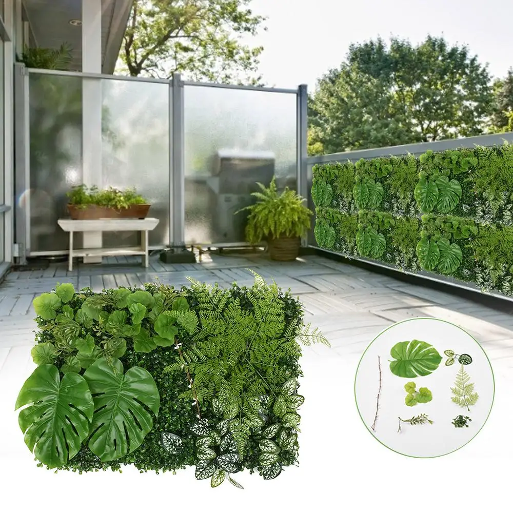 Paneles de plantas artificiales de 40x60cm, pantalla de seto de privacidad, decoración de jardín al aire libre para paredes, vallas, pared de plantas artificiales realistas