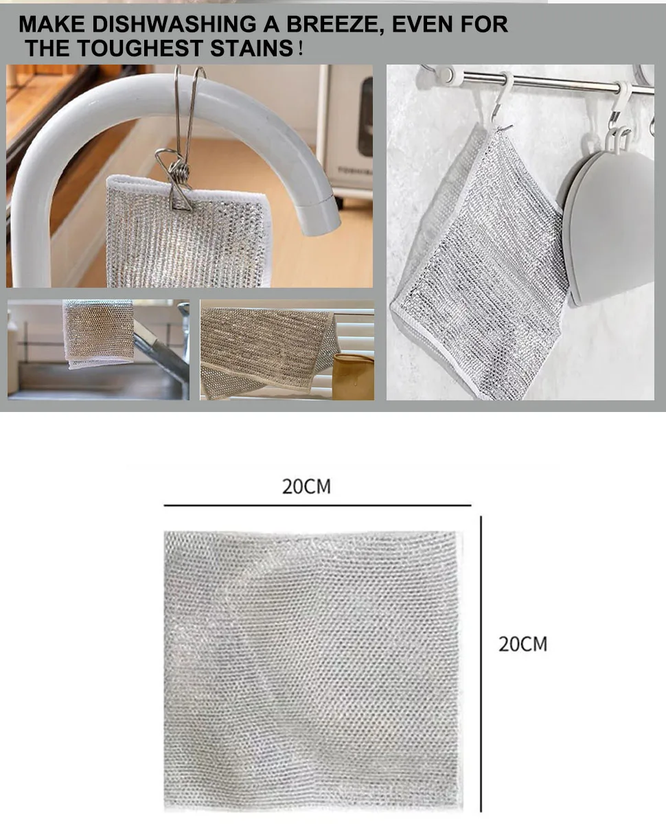 Paño de limpieza de cocina, trapo de limpieza de alambre de acero reutilizable, 5/10/20 piezas