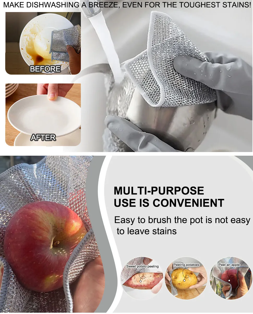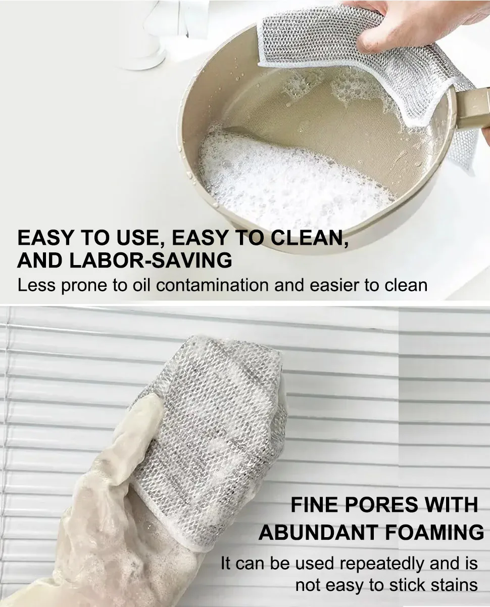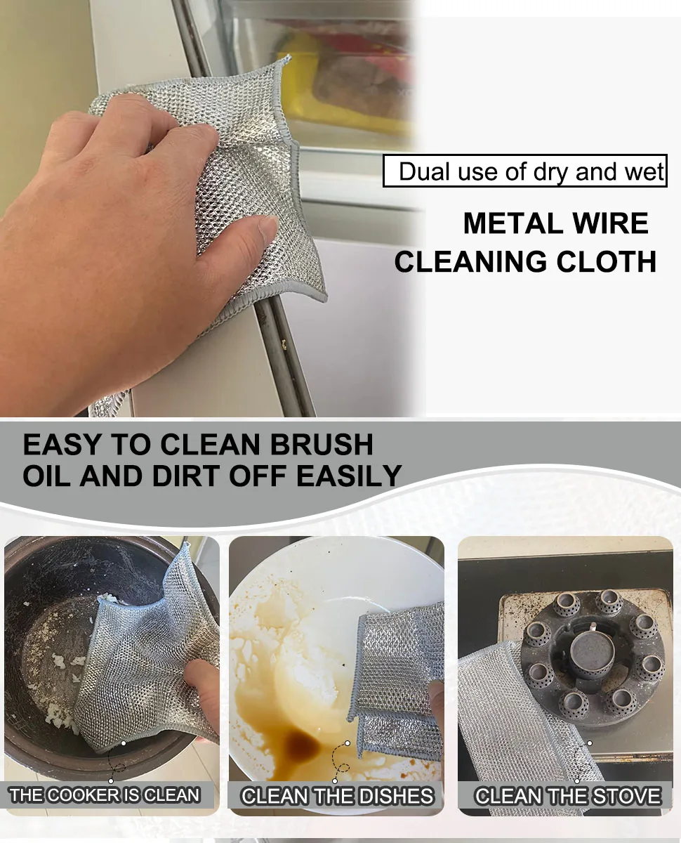 1.Trapo plateado de alambre de metal, que puede reemplazar bolas de lana de acero.