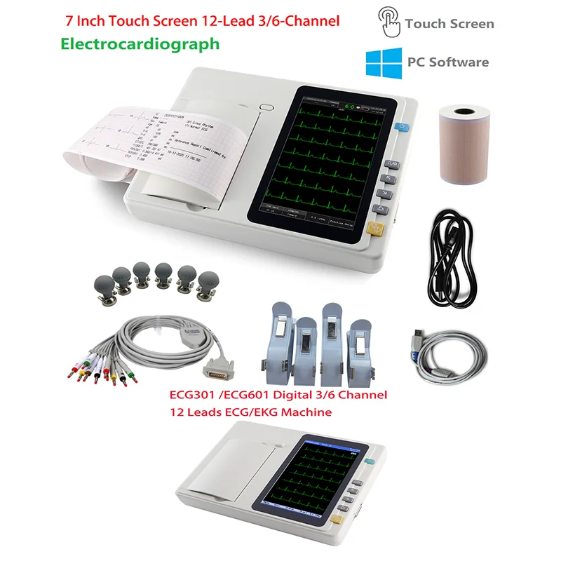 Con todos los accesorios ECG301 /ECG601 Digital 3/6 Canal 12 derivaciones ECG/EKG máquina electrocardiógrafo