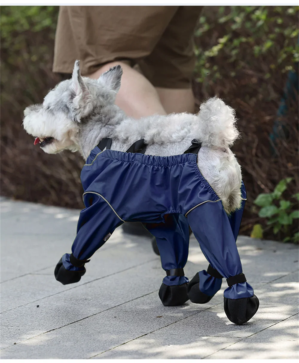 No sólo para la lluvia, este mono también se puede utilizar como traje antisuciedad, manteniendo a su perro limpio y ordenado.
