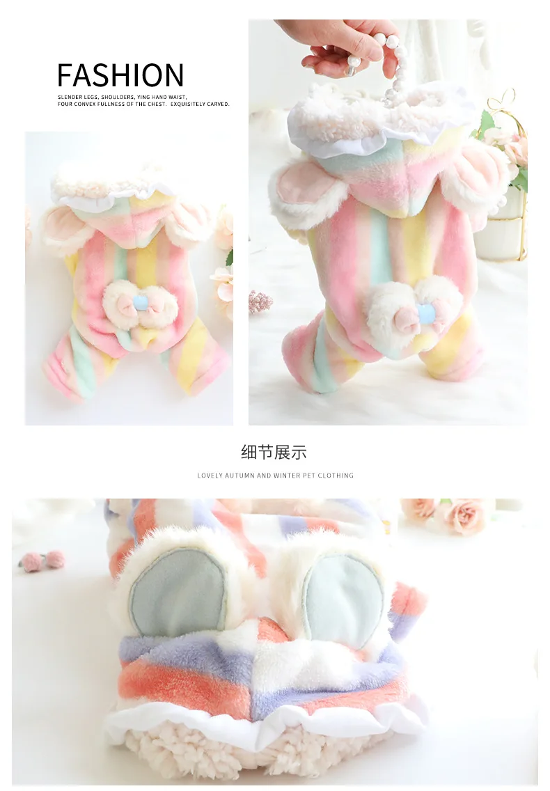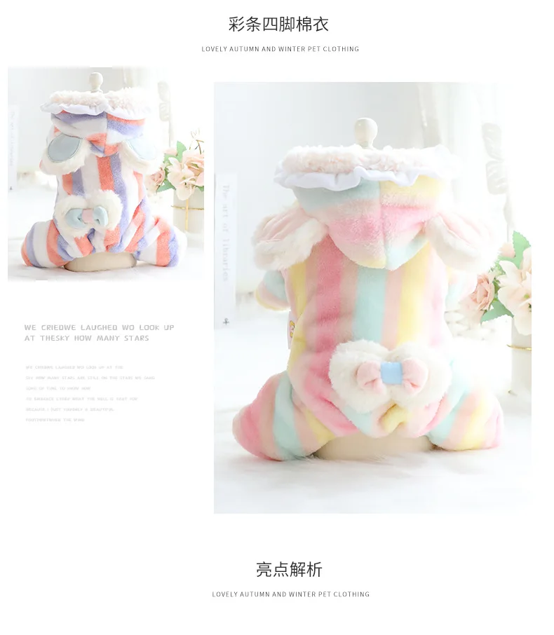 Pantalones de cuatro patas de felpa con lazo de arcoíris para mascotas, ropa de otoño e invierno, mono, abrigo de franela, peluche de princesa grueso, perro pequeño para mascota