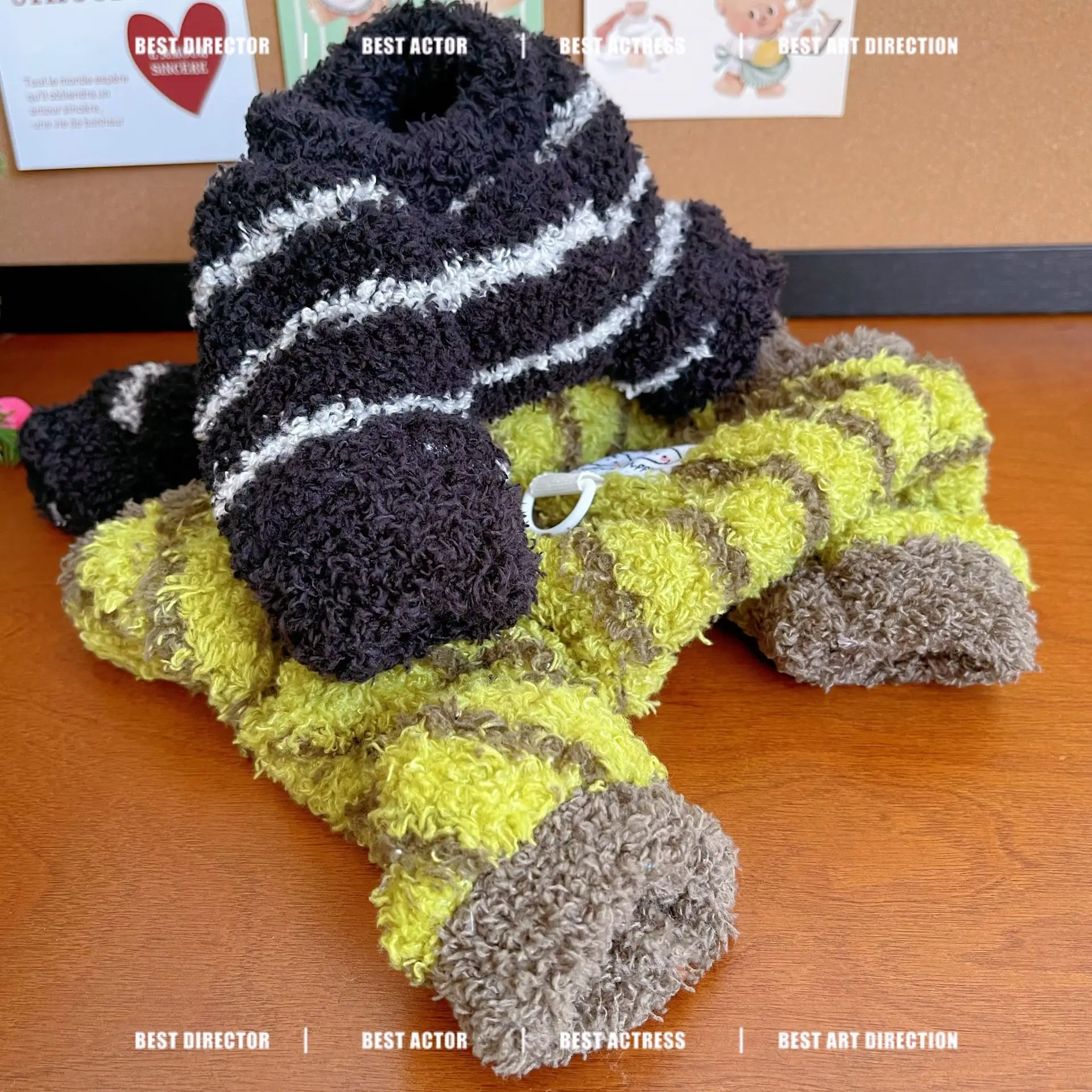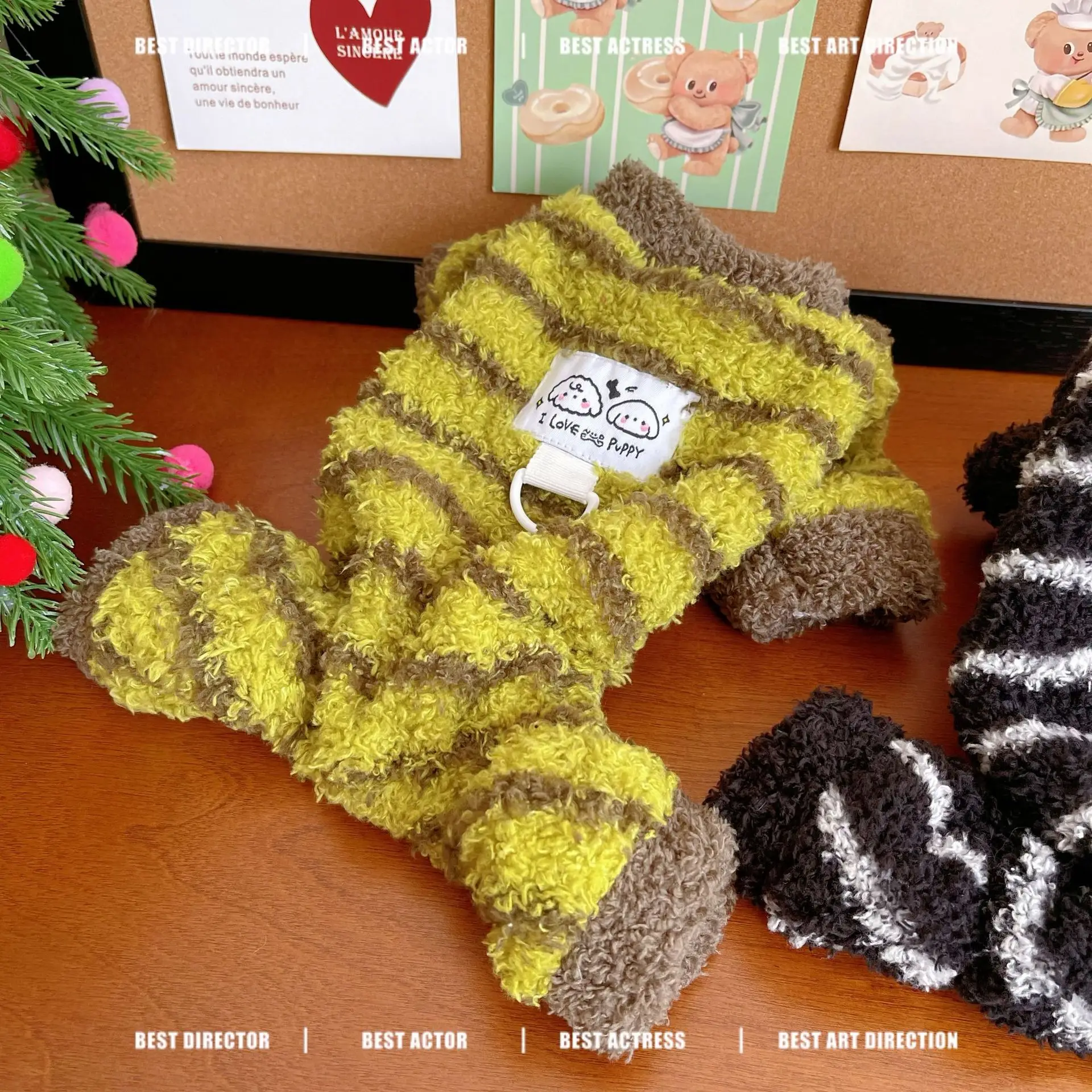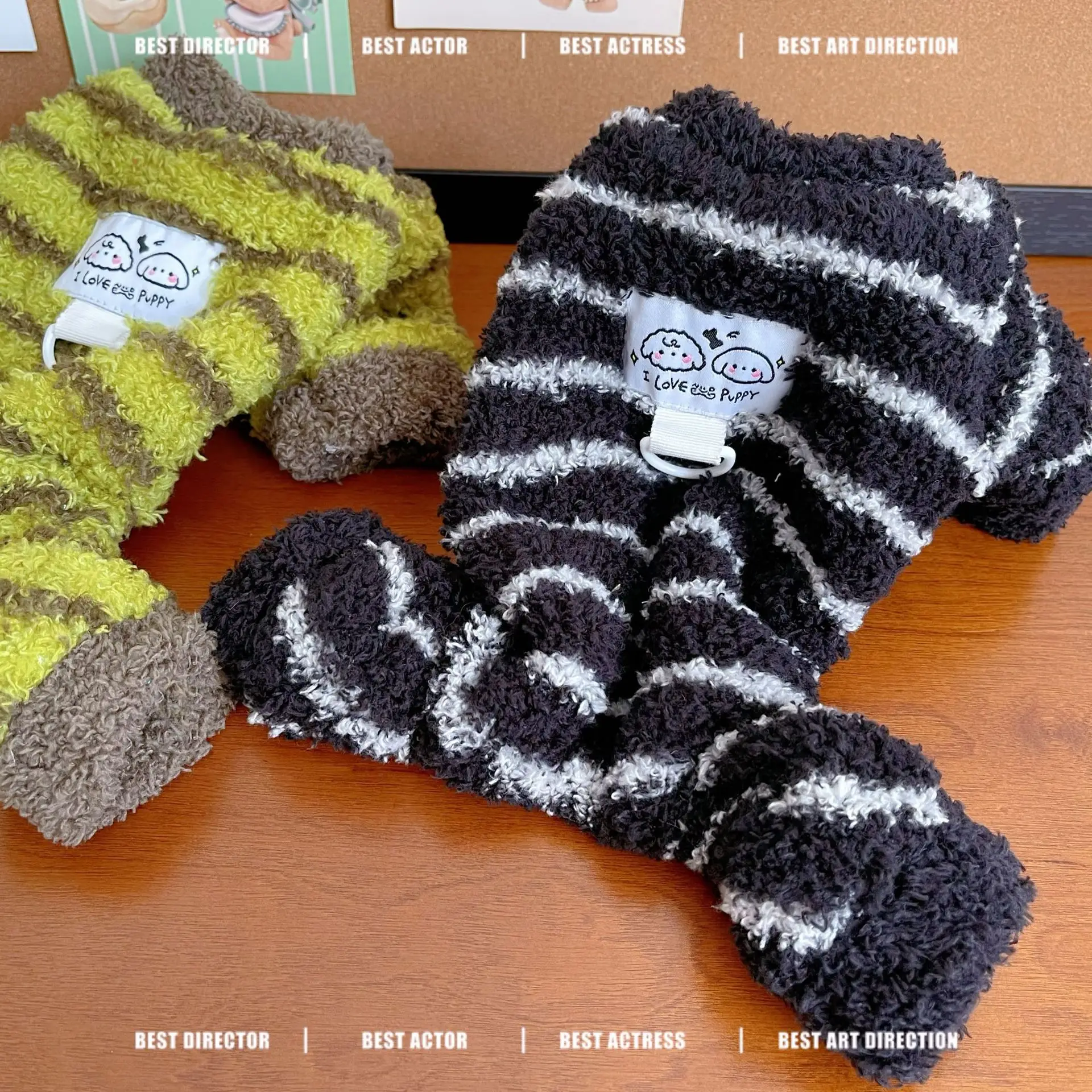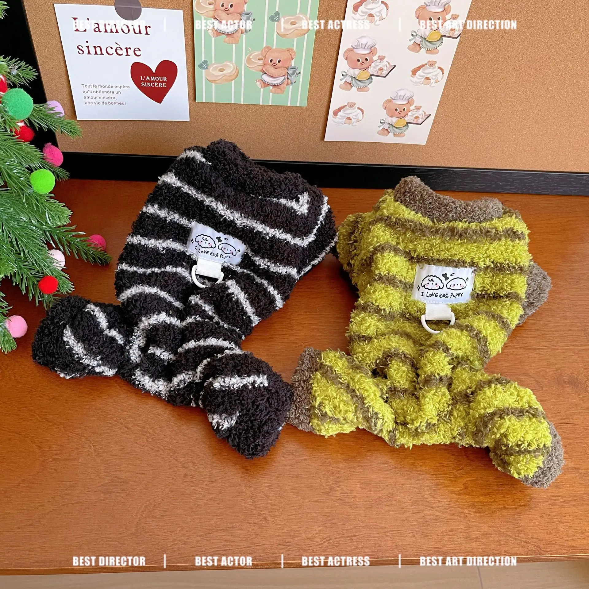 Pantalones de cuatro patas de felpa a rayas para mascotas, mono de cuatro patas de terciopelo de doble cara para otoño e invierno, ropa de casa, se puede tirar, chaqueta