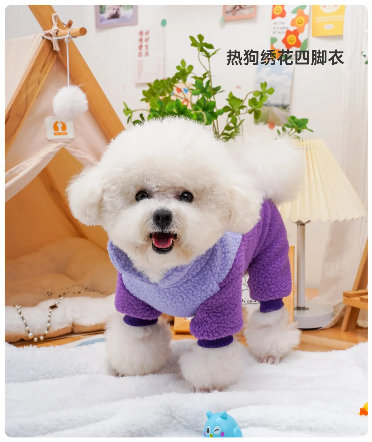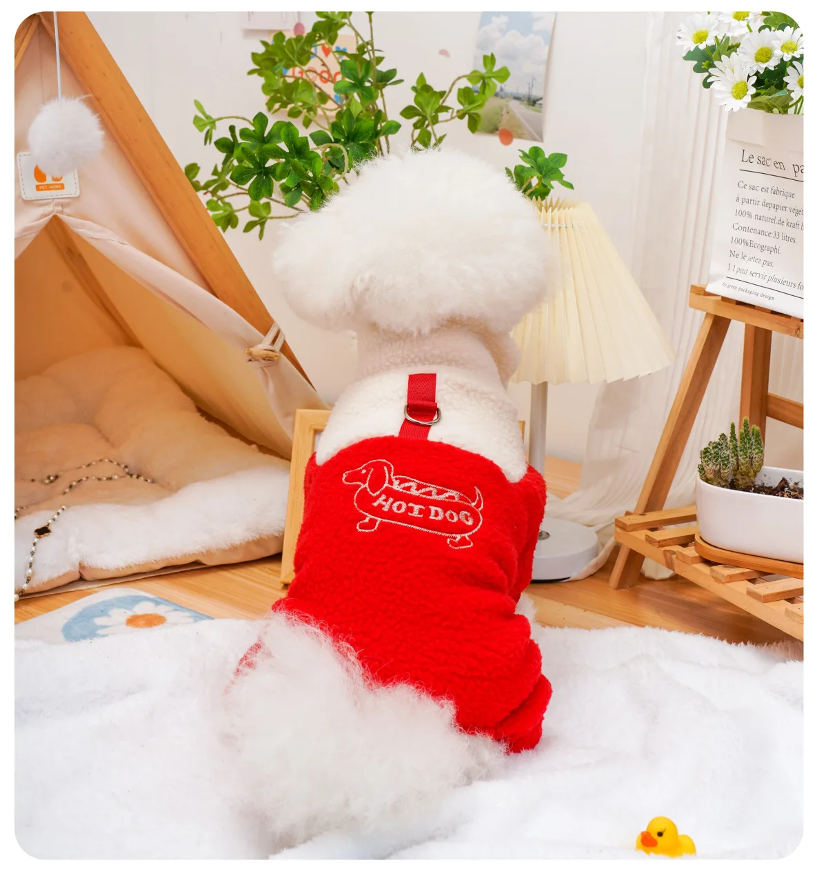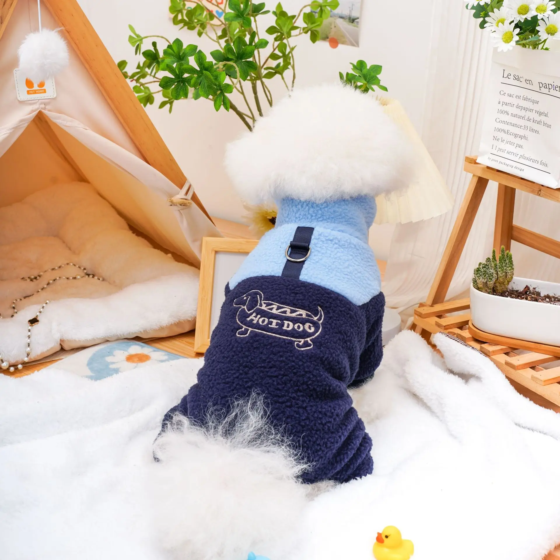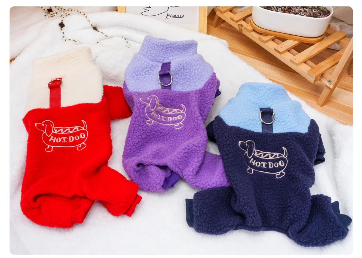 Pantalones de cuatro patas para mascotas, ropa para cachorros, gatos, lana de cordero, mono bordado para perros calientes, oso de peluche, abrigo para perros pequeños, Otoño e Invierno