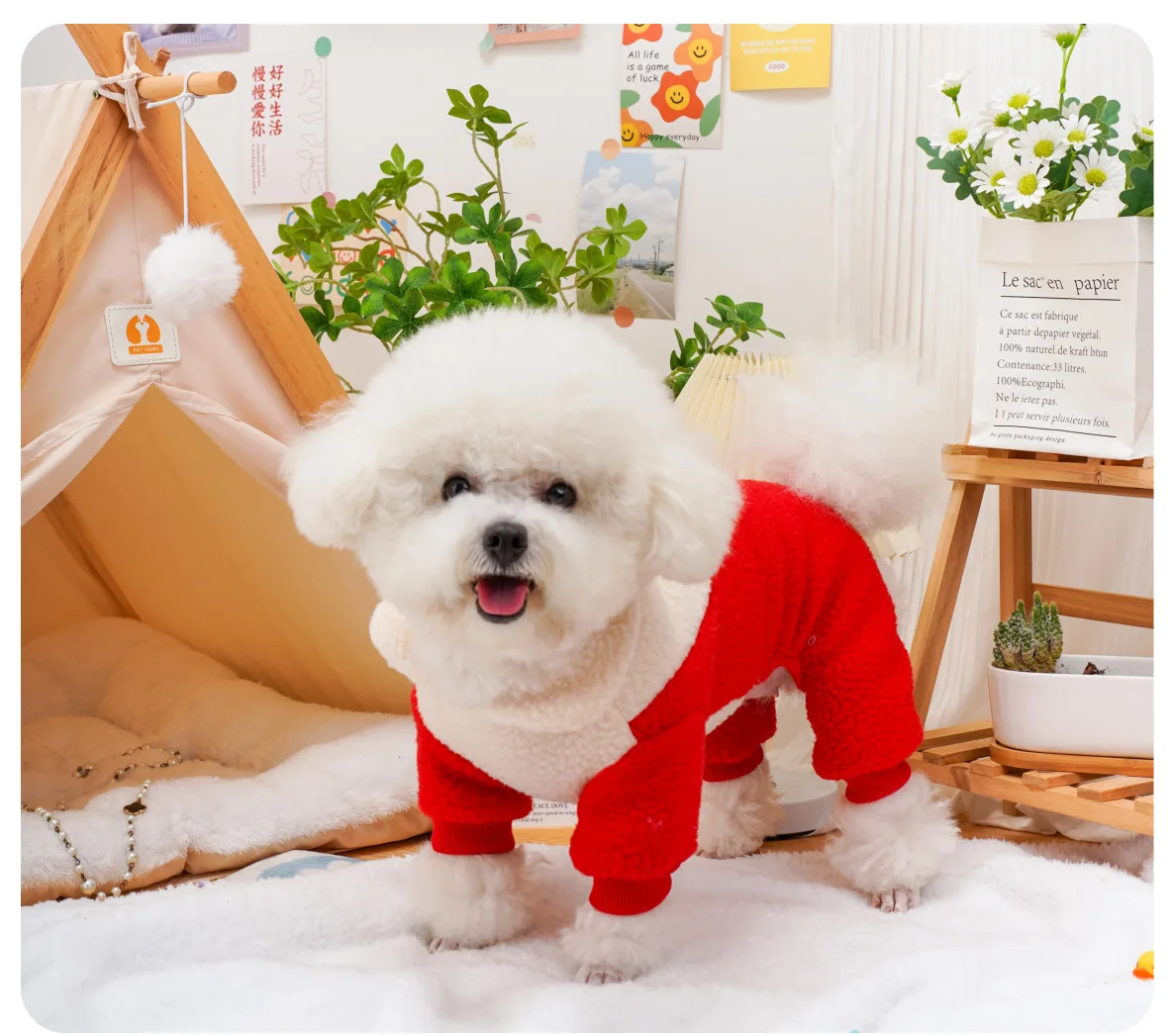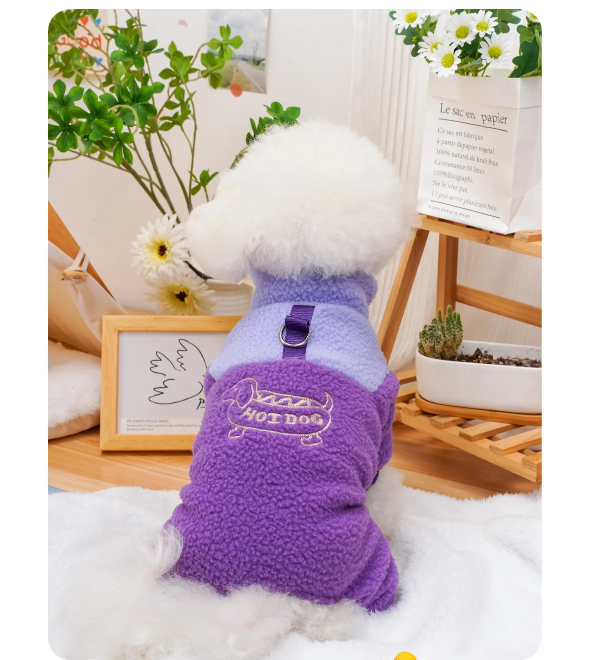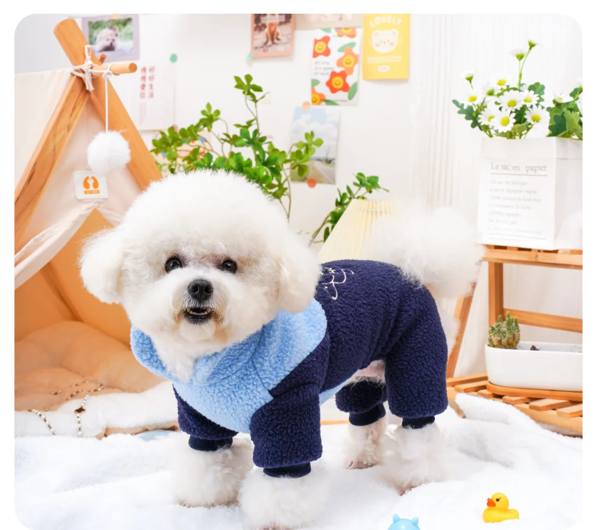 Pantalones de cuatro patas para mascotas, ropa para cachorros, gatos, lana de cordero, mono bordado para perros calientes, oso de peluche, abrigo para perros pequeños, Otoño e Invierno