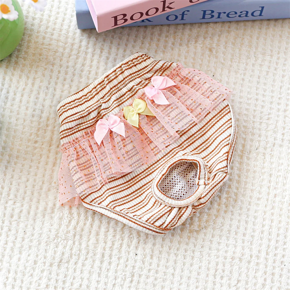 El patrón de rayas de estos pantalones cortos para perros añade un toque de estilo al guardarropa de tu mascota, haciéndola destacar.