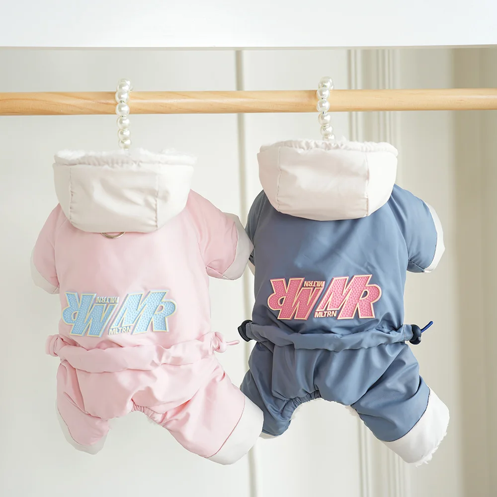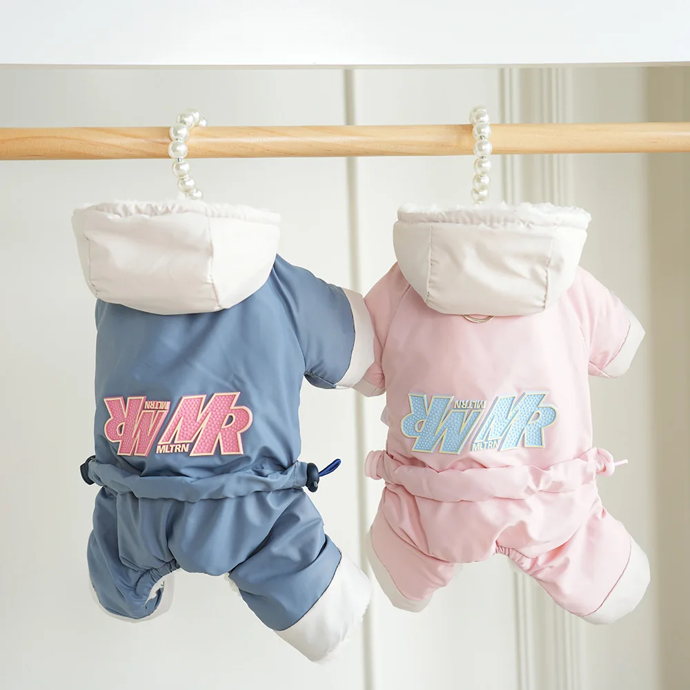 Pantalones impermeables de cuatro patas para mascotas, abrigo grueso para exteriores, perros pequeños, gatos, ropa para cachorros de peluche, otoño e invierno