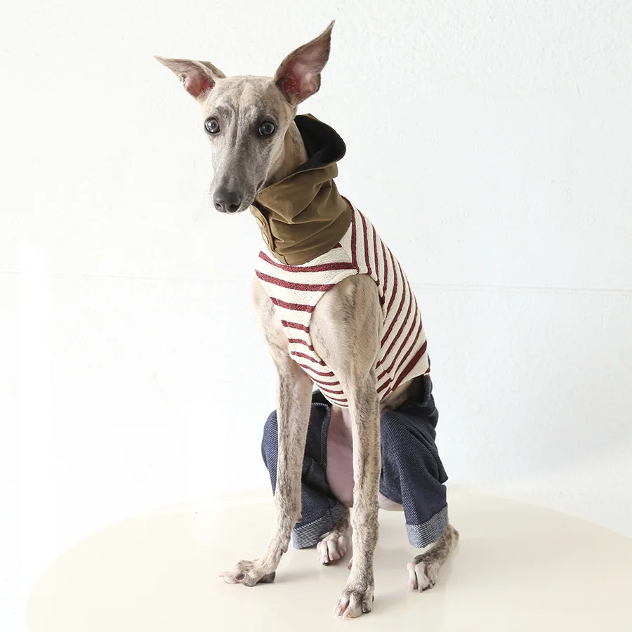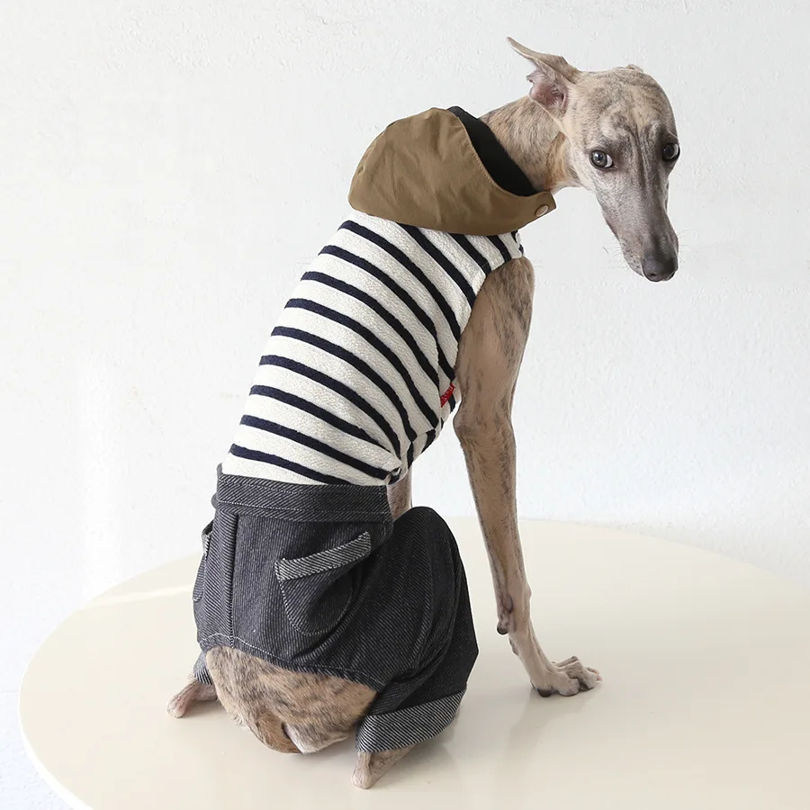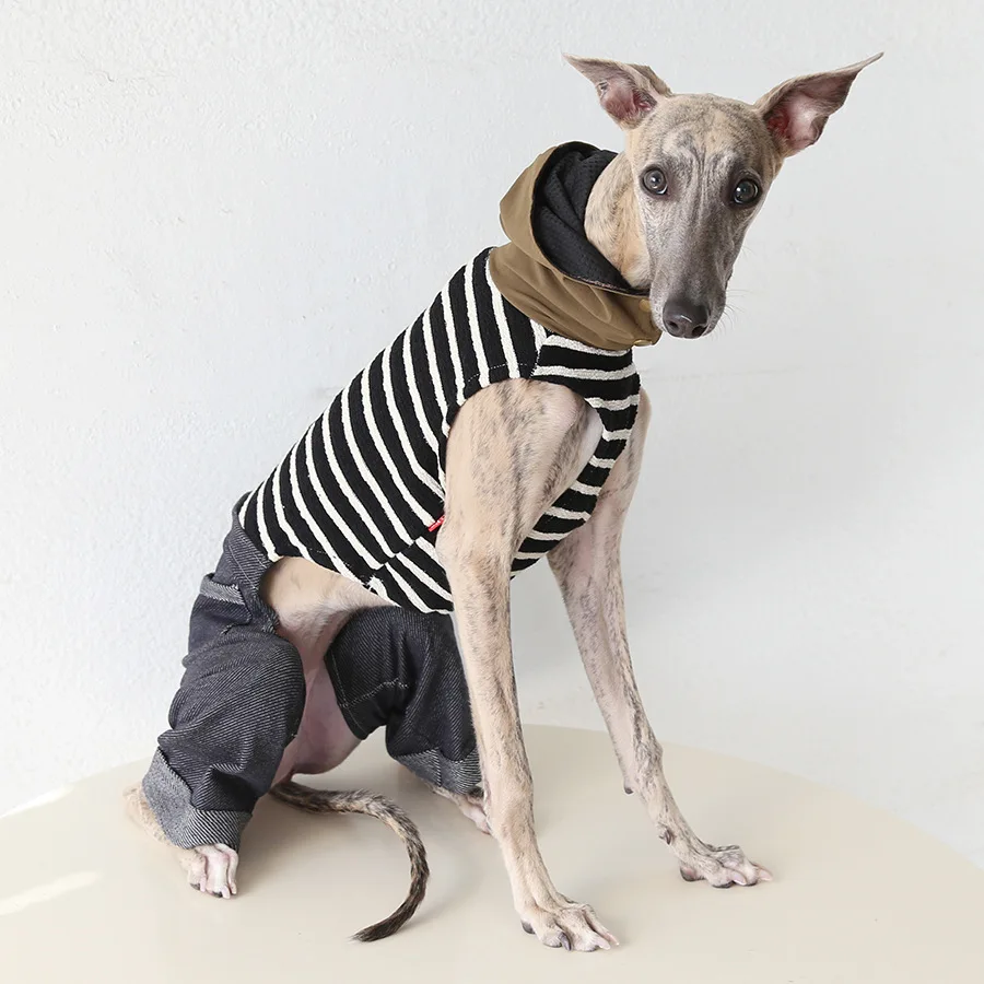 Pantalones de transporte de mezclilla finos azules ajustables para perros Whippet, abrigo de manga a rayas de 4 patas para Italia, berio, beningtoniano
