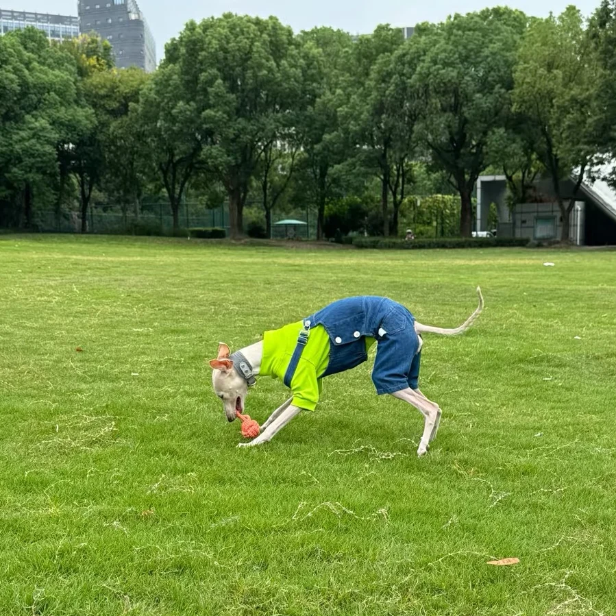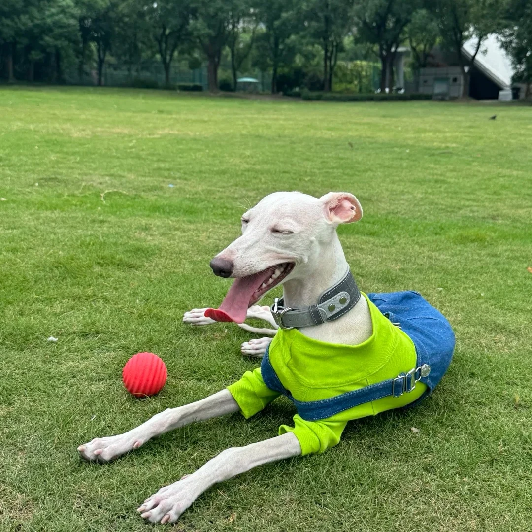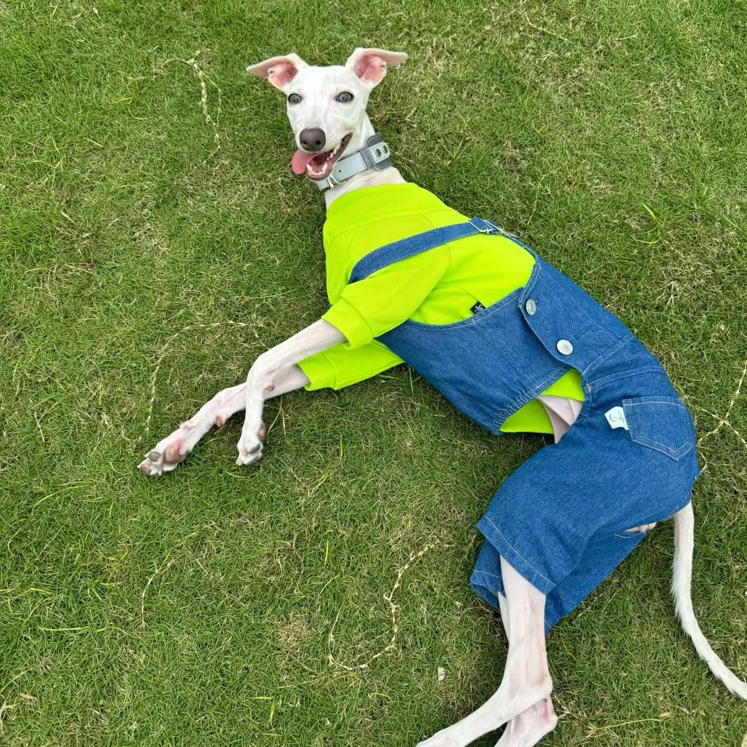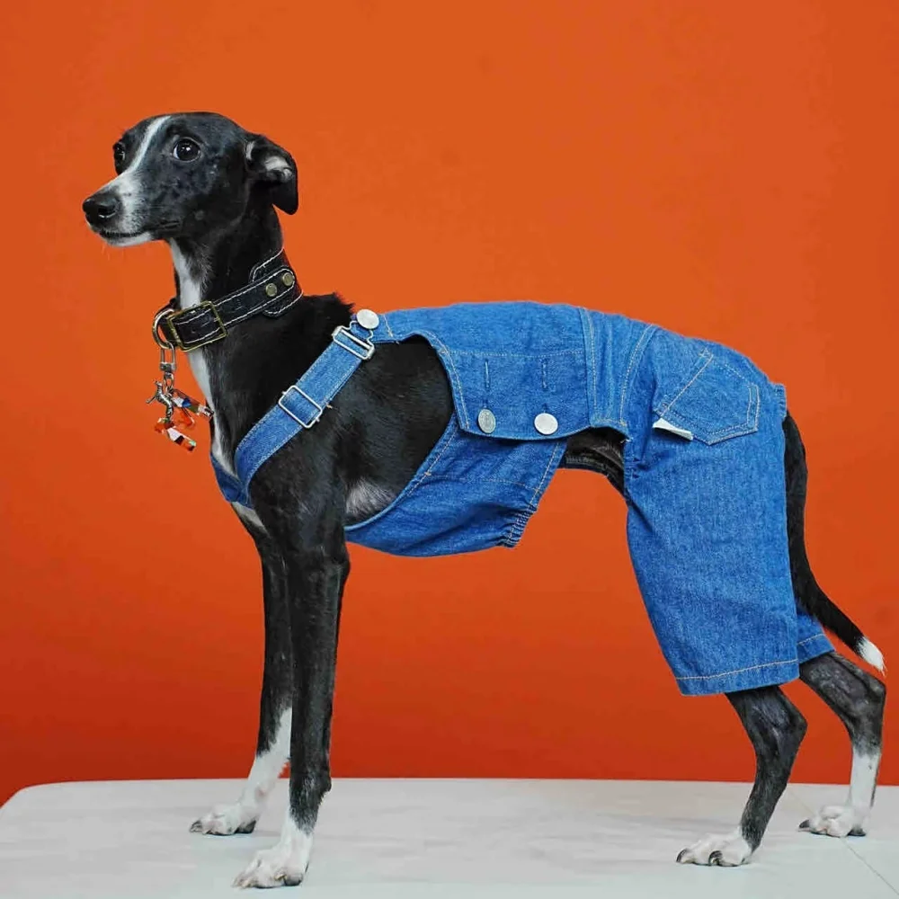 Pantalones vaqueros de algodón azul ajustables para perros medianos, abrigo de primavera de 4 patas para galgo italiano en disfraz de moda de primavera para Whippet