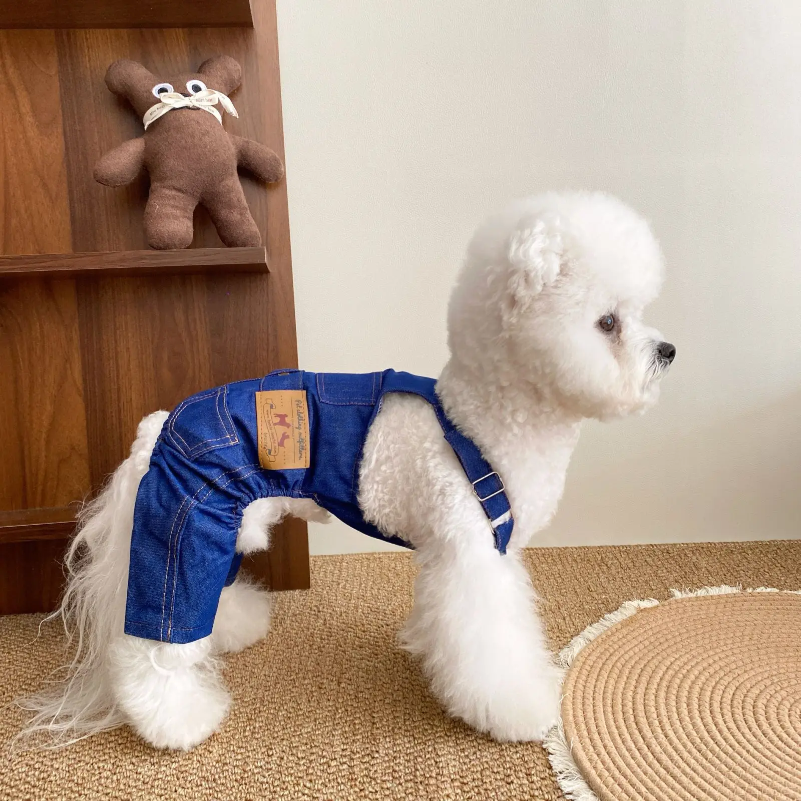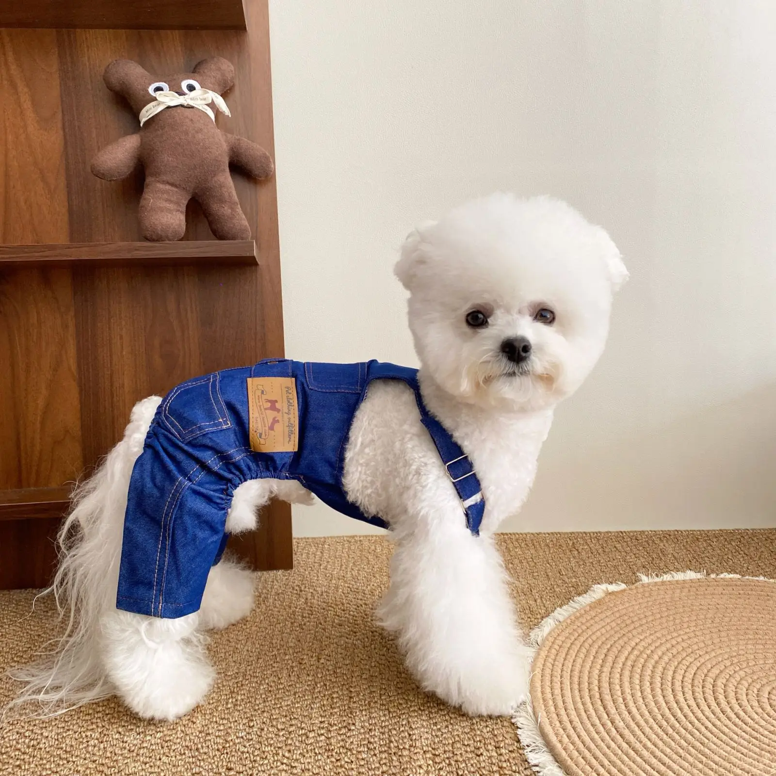 Pantalones vaqueros finos con tirantes para mascotas, ropa para gatos, pantalones Schnauzer de peluche para perros pequeños, disfraz para perros, ropa para cachorros, primavera y otoño