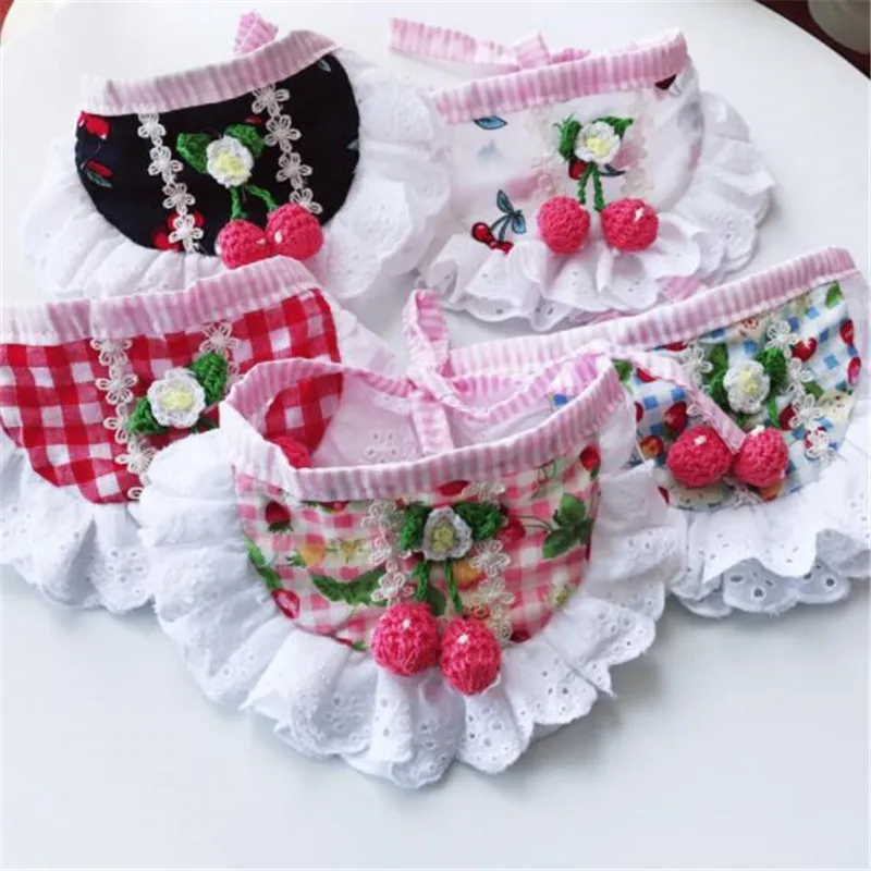 Bandana de encaje de cereza, pañuelo para mascotas, baberos para perros, Collar, Bandana para perros pequeños, cachorro, gato, bufanda, babero, accesorios para mascotas