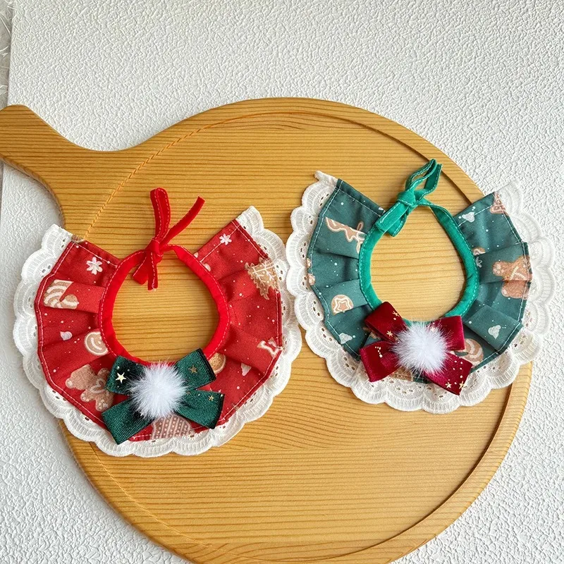 Pañuelo de Navidad para mascotas, Collar con bola de pelo, sombrero, conjunto de Navidad para gatos, bufanda de agua para perros, bufanda roja y verde, accesorios para cachorros