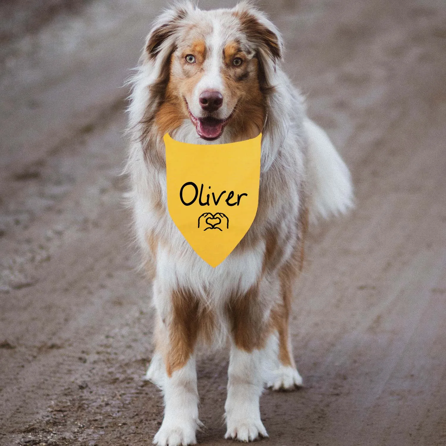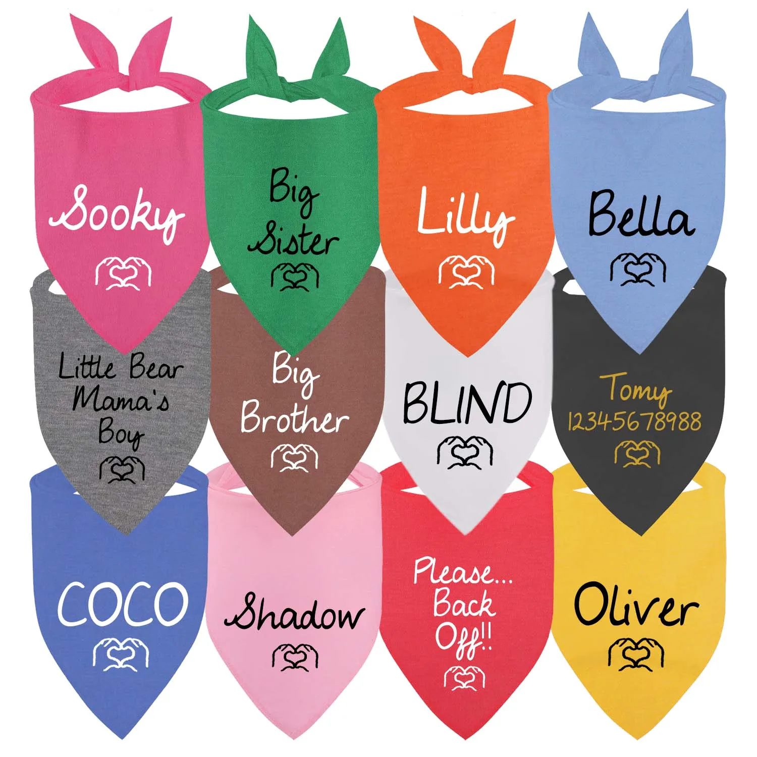 Pañuelo para perro con nombre personalizado, Collar personalizado, babero Triangular para mascotas, bufanda para gato, cachorro, accesorios con gesto de corazón de mano