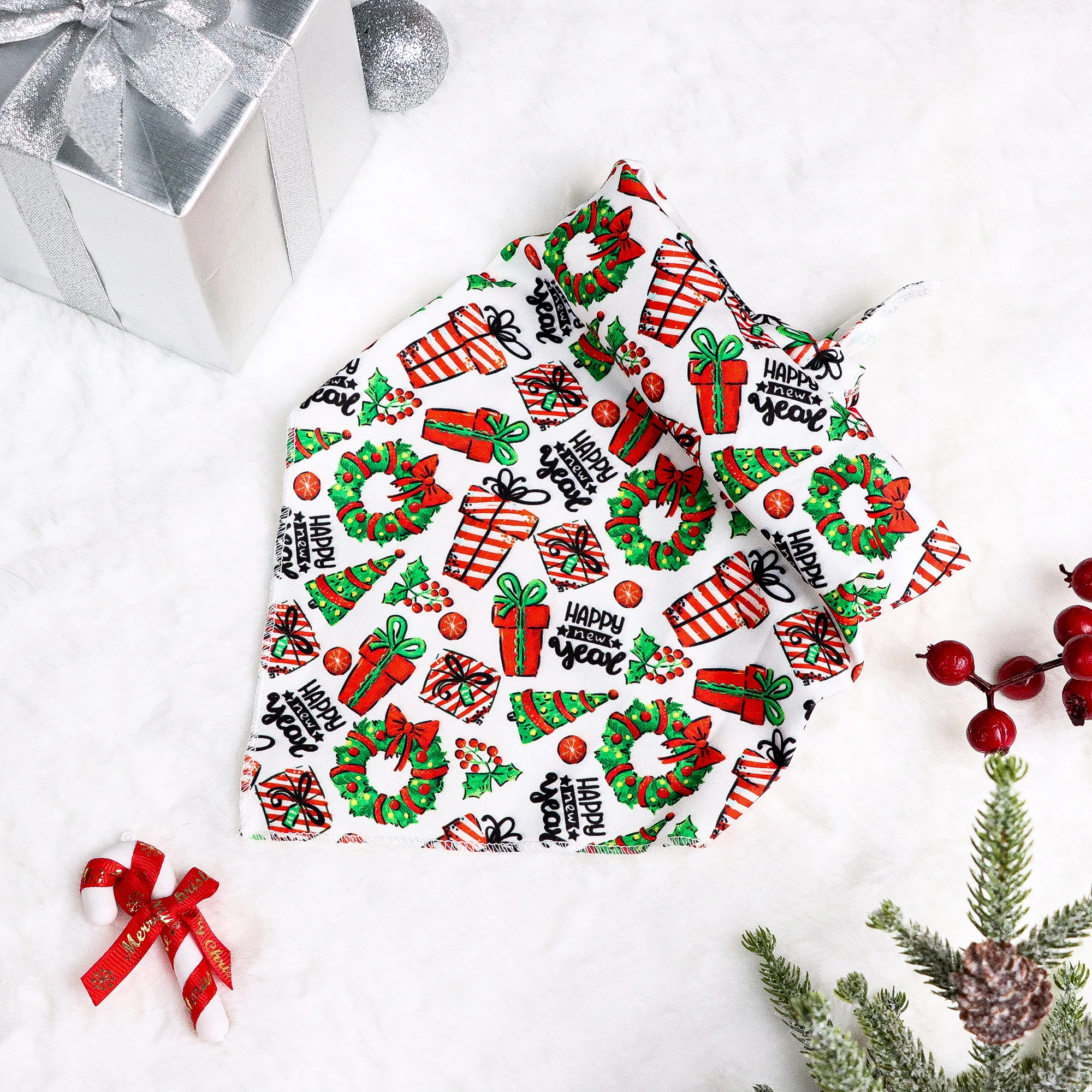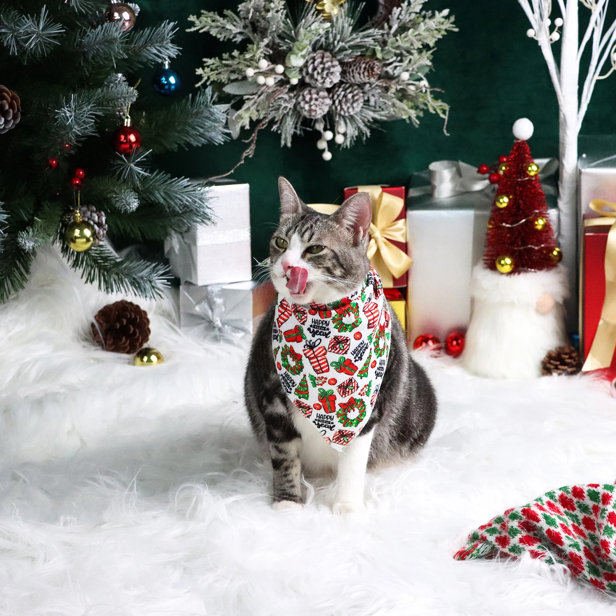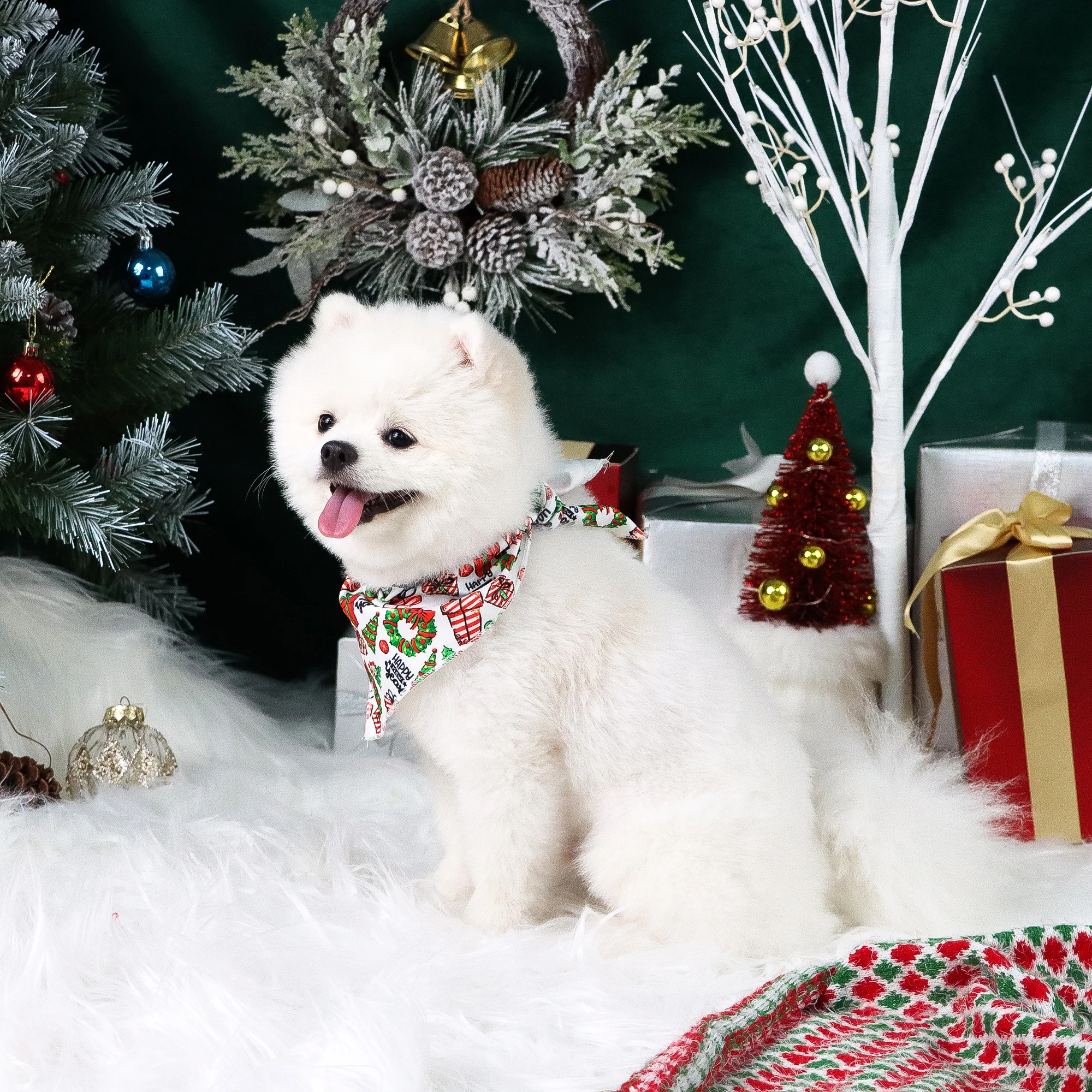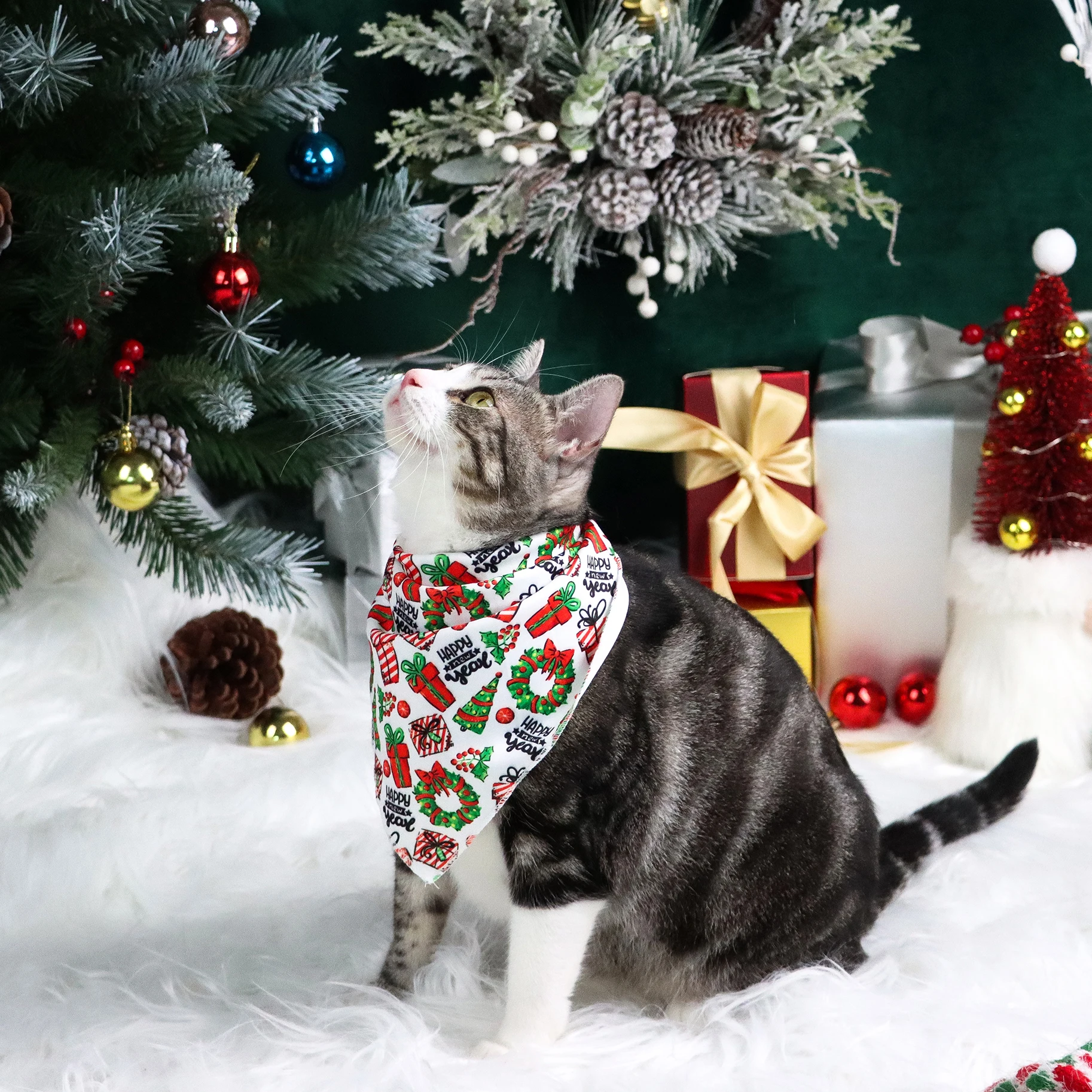 Pañuelo para perro, pañuelo navideño pequeño con estampado de árbol de Navidad para mascotas, pañuelo triangular con patrón de caja de regalo, accesorios para mascotas
