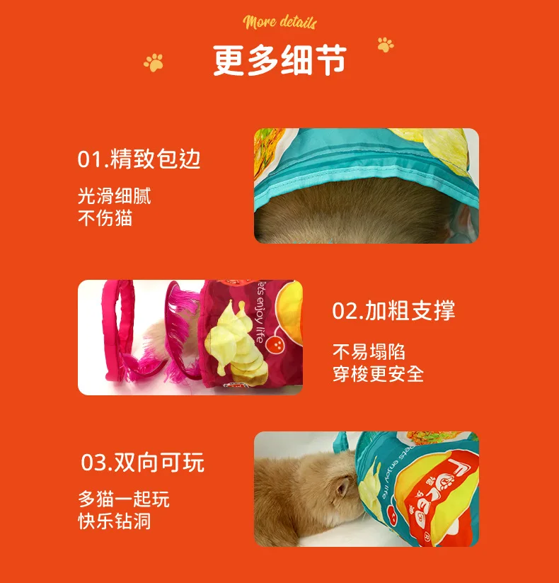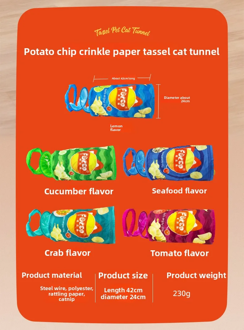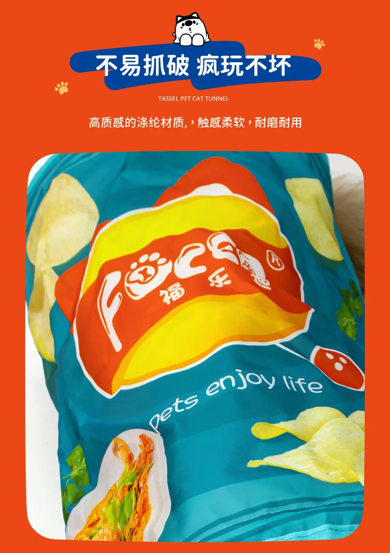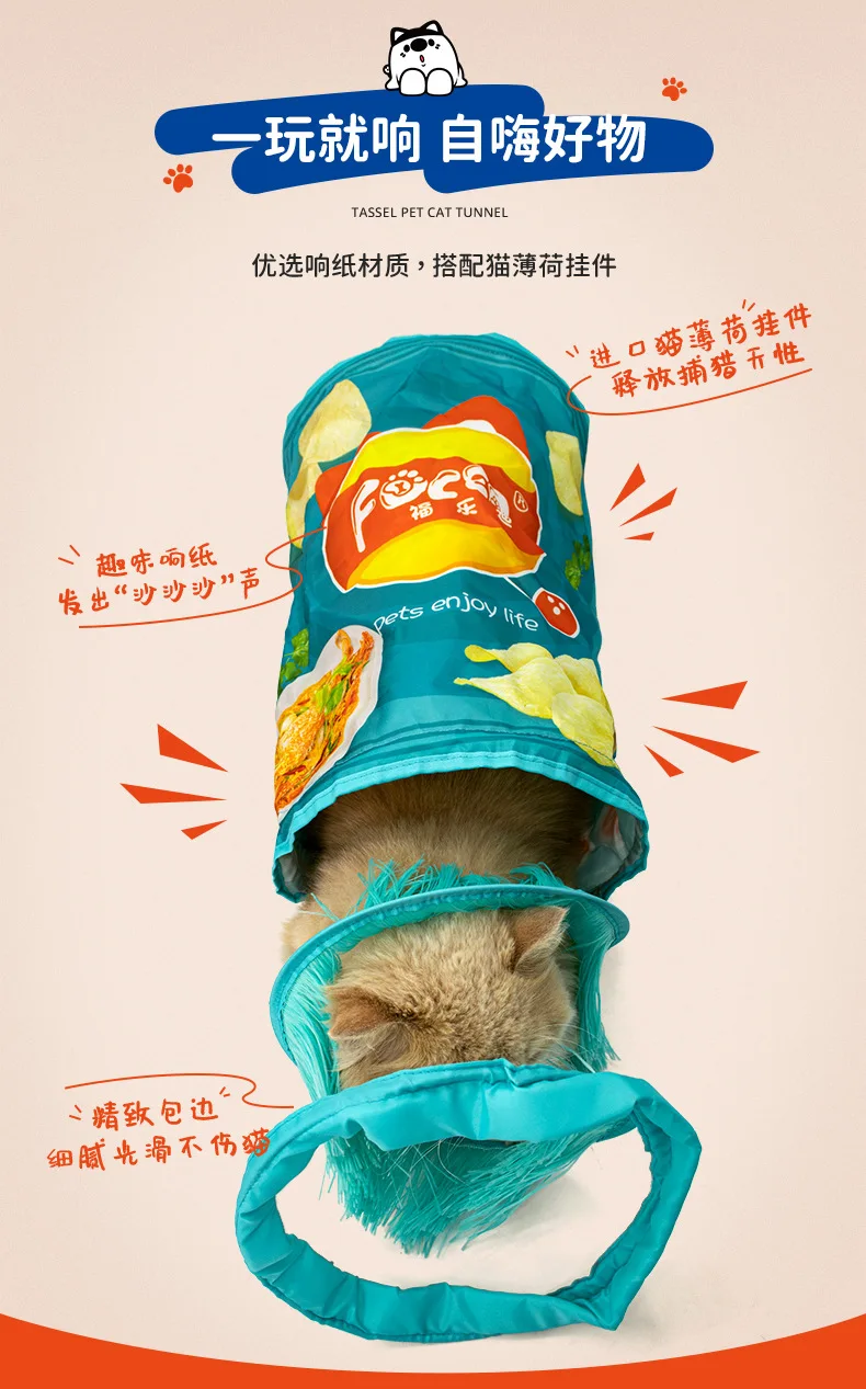 Papel con sonido para mascotas, serie de patatas fritas con sonido, juguetes para mascotas, túnel de paso para gatos resistente a desgarros, juguetes para gatos