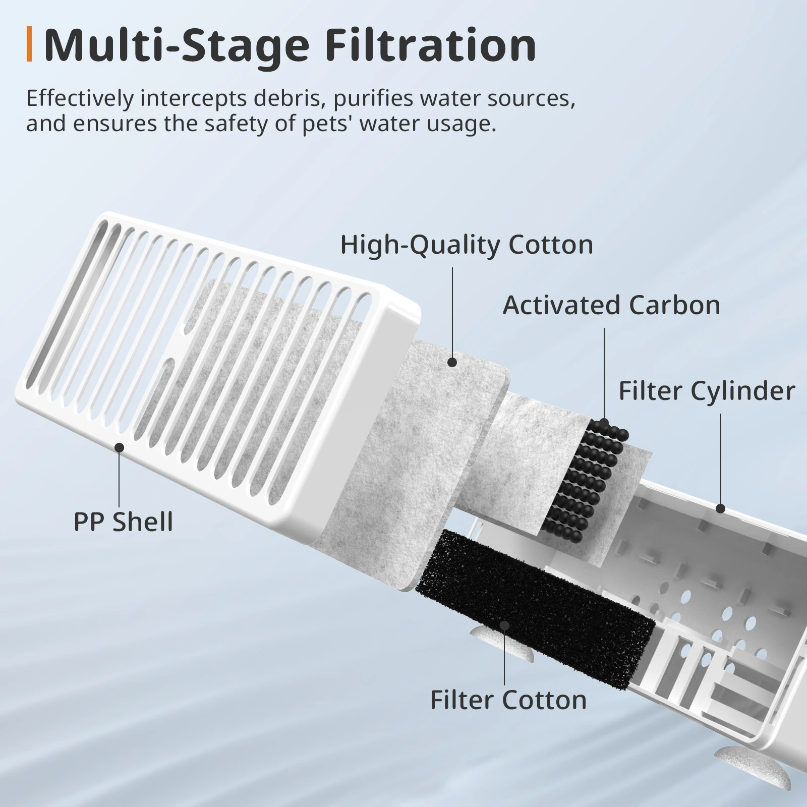 Disfrute de un proceso de reemplazo de filtros rápido y sencillo, lo que hace que el mantenimiento de fuentes para mascotas sea sin complicaciones.