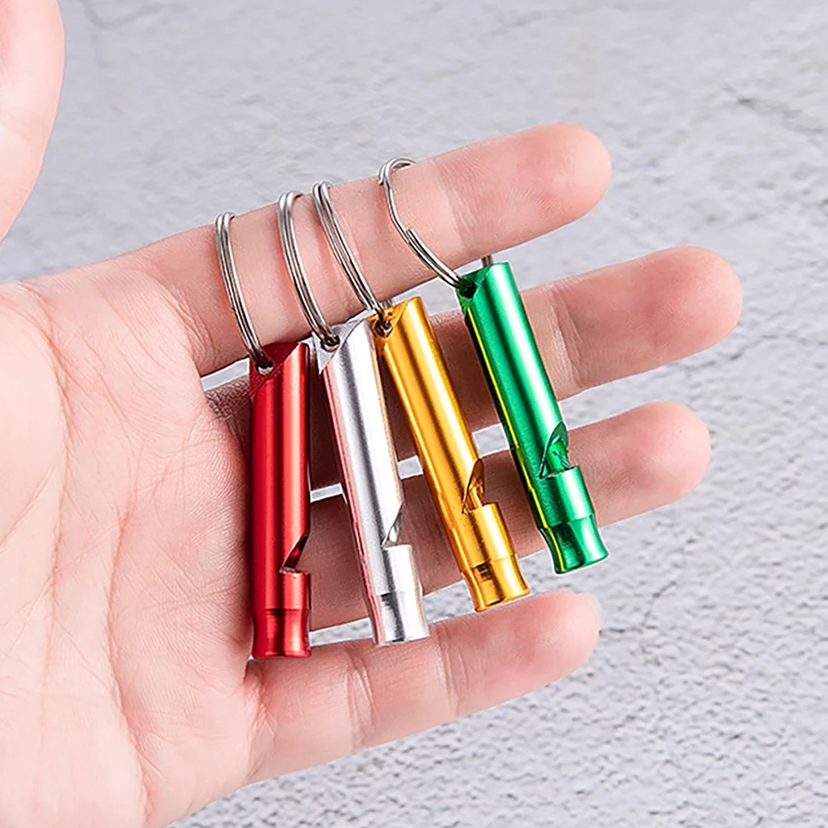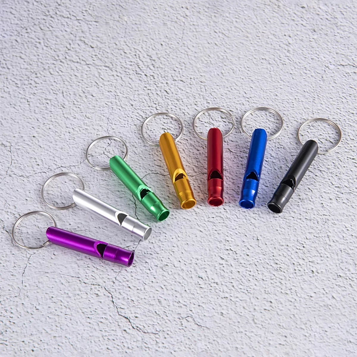 Paquete de 5 silbatos de entrenamiento de alta frecuencia de Metal, diseño de llavero portátil, entrenamiento para mascotas, silbato de juez de supervivencia al aire libre, Color aleatorio.