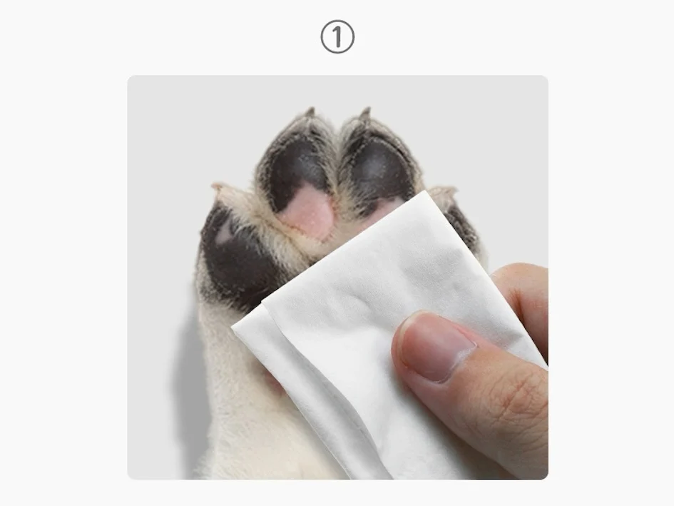 Limpia el polvo en la parte inferior de los pies de tu perro (si usa una toalla mojada, sécala después de limpiarla).