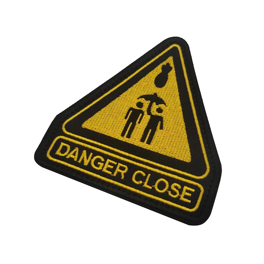 Nombre del producto:Parche bordado con cierre de peligro, insignia para brazalete, calcomanía, adorno de apliques, parches bordados tácticos militares decorativos