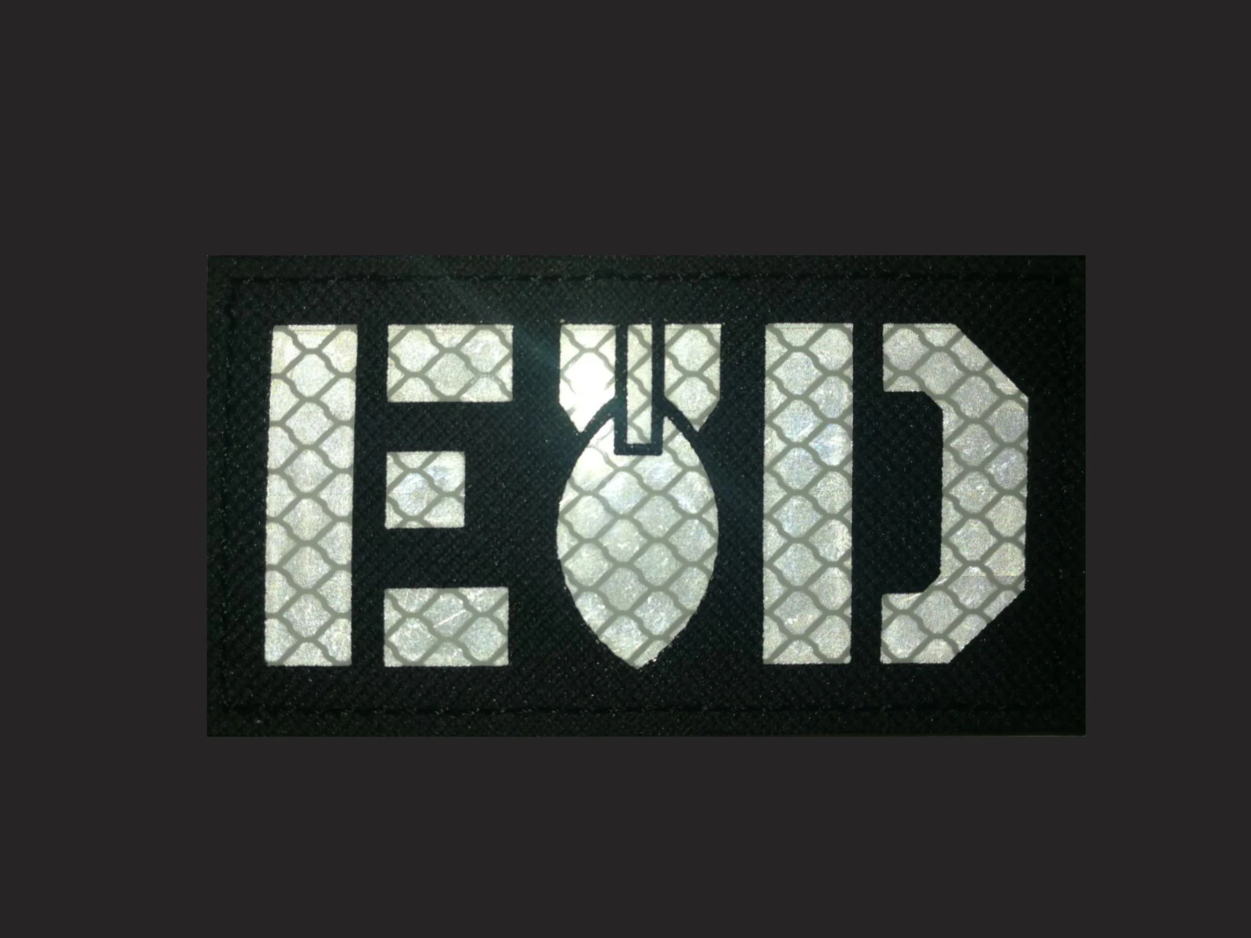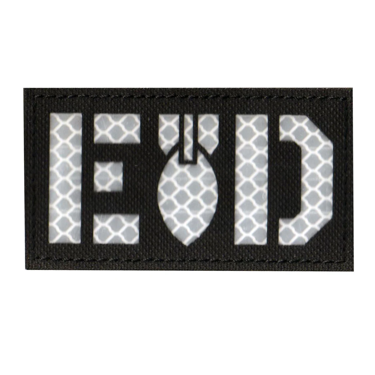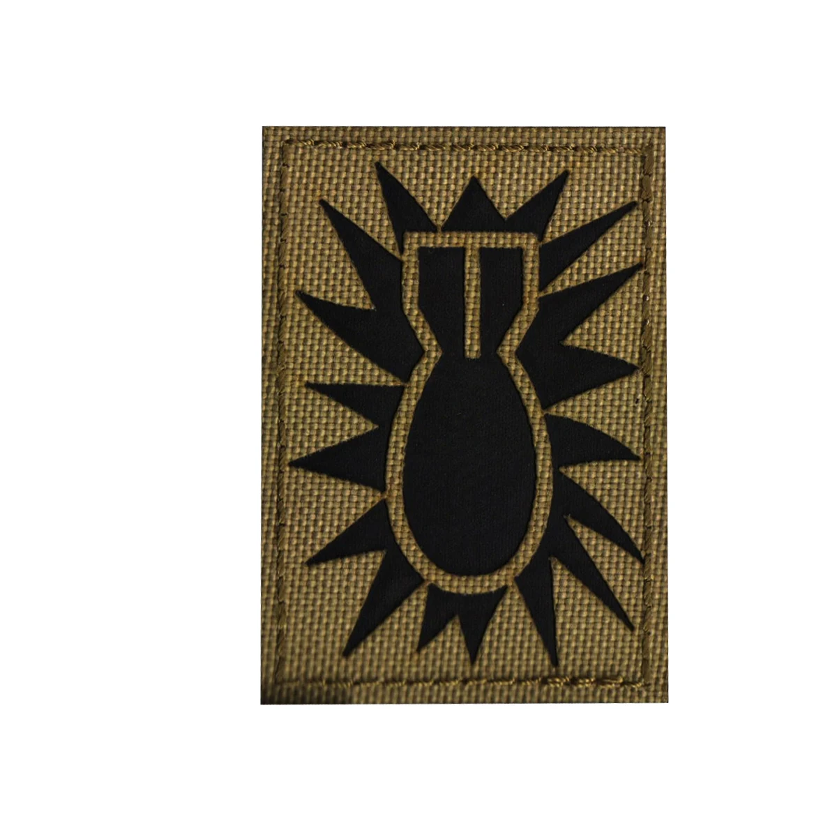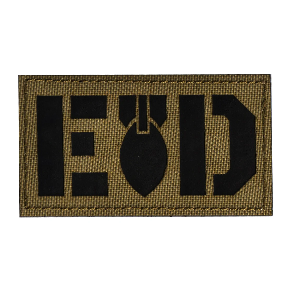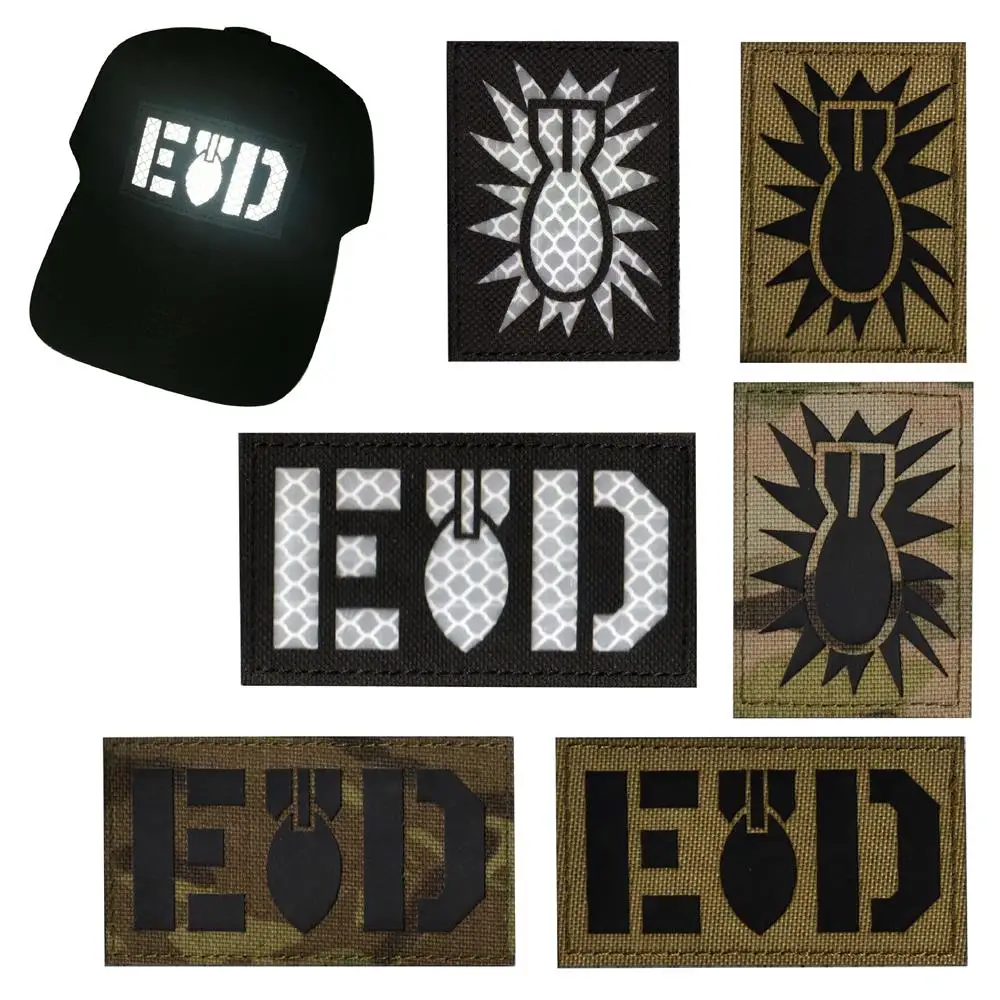 Nombre del producto:Parche bordado EOD, insignia con emblema, bomba reflectante de luz, parches militares tácticos con gancho para ropa, mochila