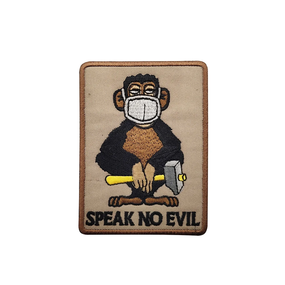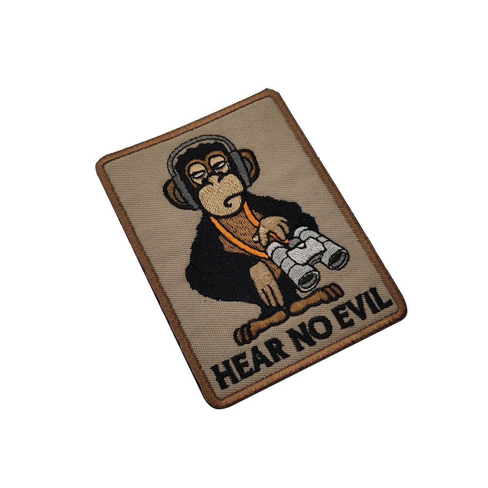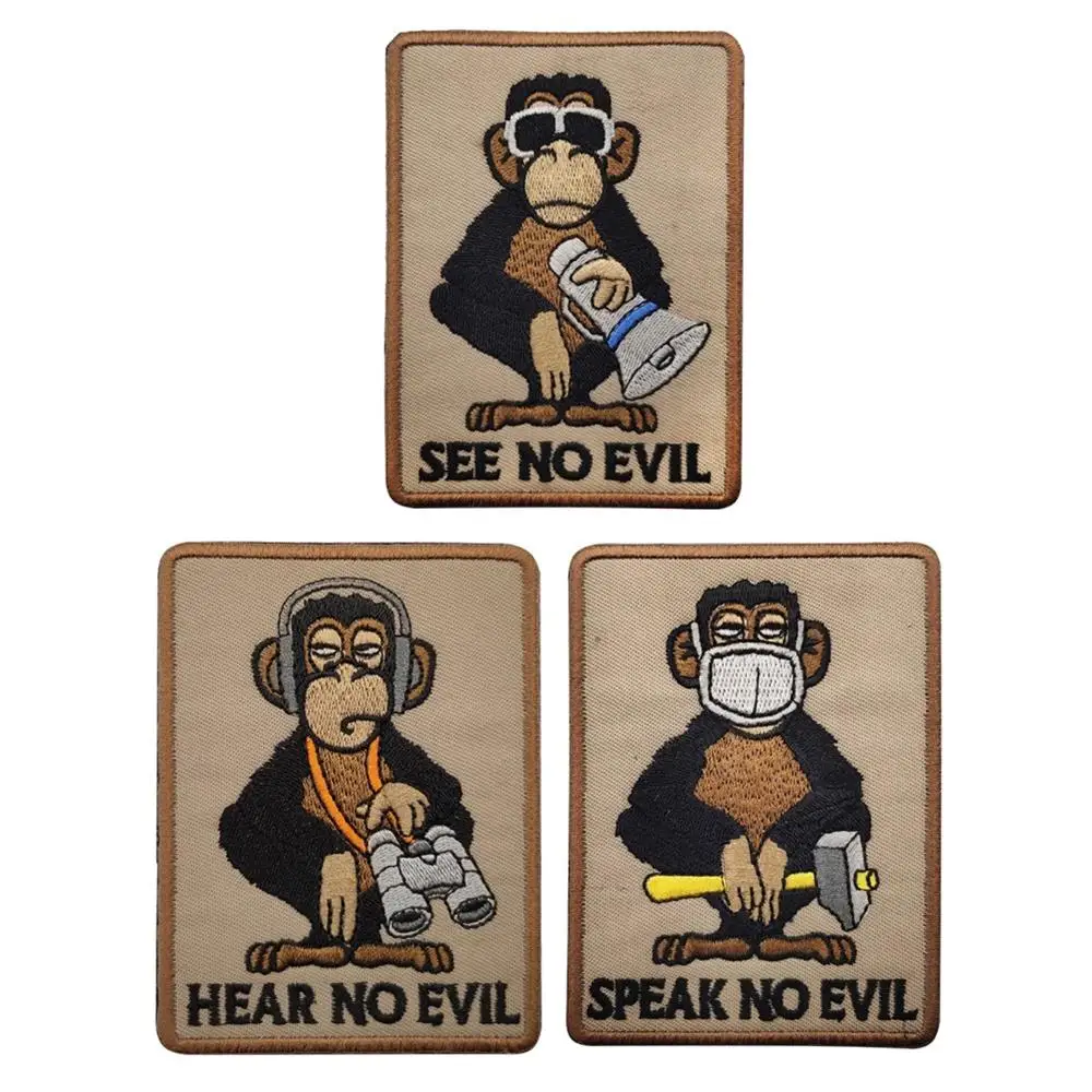 Nombre del producto: Insignia de brazalete con parche bordado de mono de tres sabios, táctico militar, ver habla, escuchar, sin parches decorativos malvados