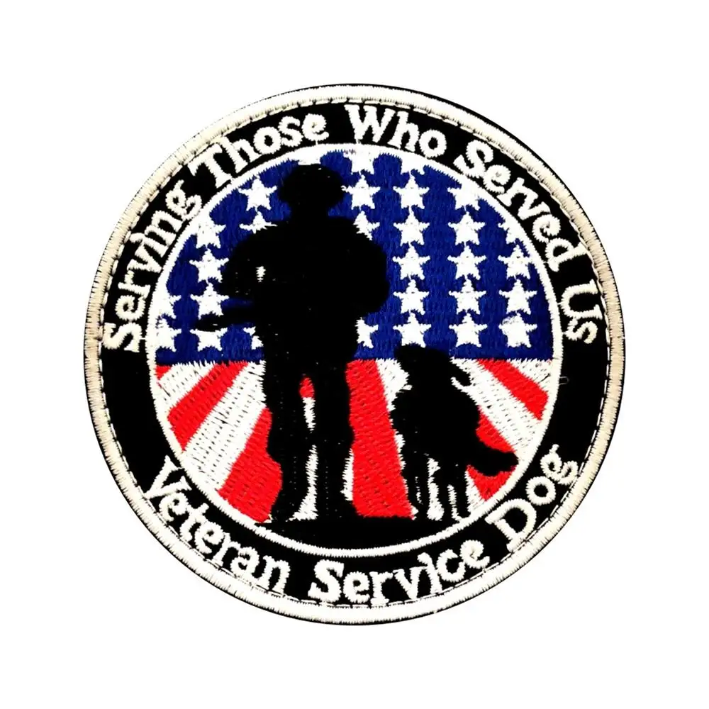 Nombre del producto: Parche bordado para perros de servicio veterano Parches para bolsas de paquete de perros para operador militar táctico con respaldo de gancho y bucle