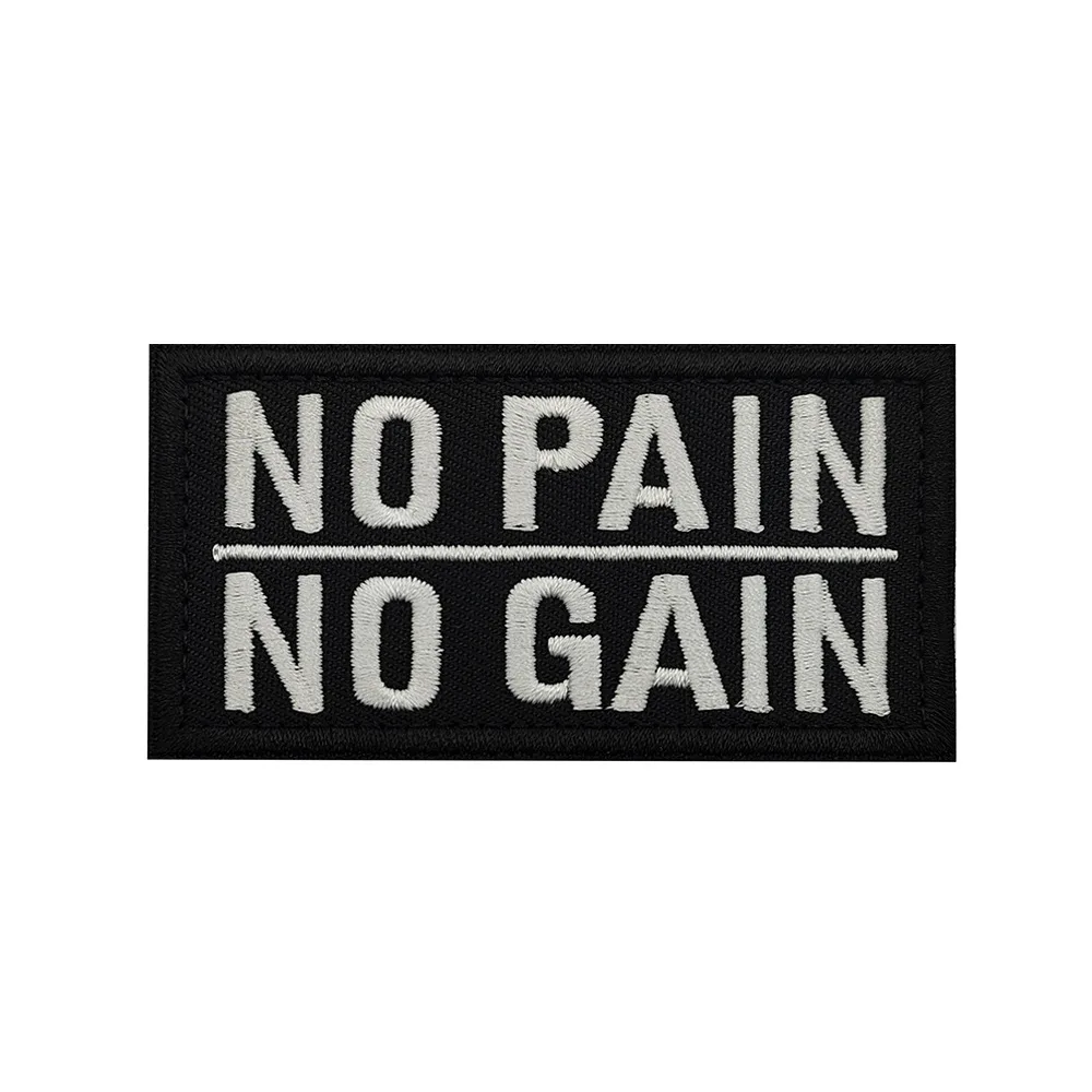 Nombre del producto:Sin dolor, sin ganancia, parche bordado, insignia para brazalete, pegatina, adorno de apliques, parches bordados decorativos para hacer ejercicio